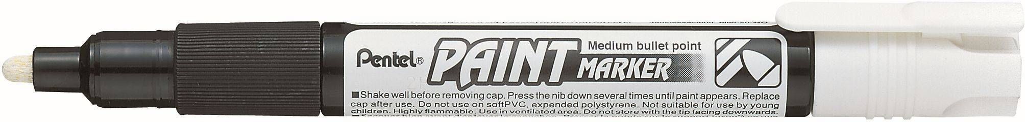 Permanentne värvimarker Pentel MMP20, millel on 4 mm ots ja seda saab kasutada klaasil, kivil, metallil, plastikul, paksu papil, kummil ja paljudel teistel pindadel. Tindi värv on selge hästi nähtav.
