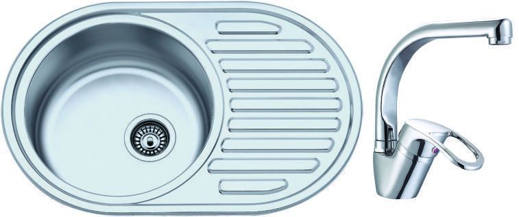 Komplekti kuulub roostevaba terasest valamu Porto BL859 770 x 500 x 180 mm, segisti OQ 2100 ja sifoon.