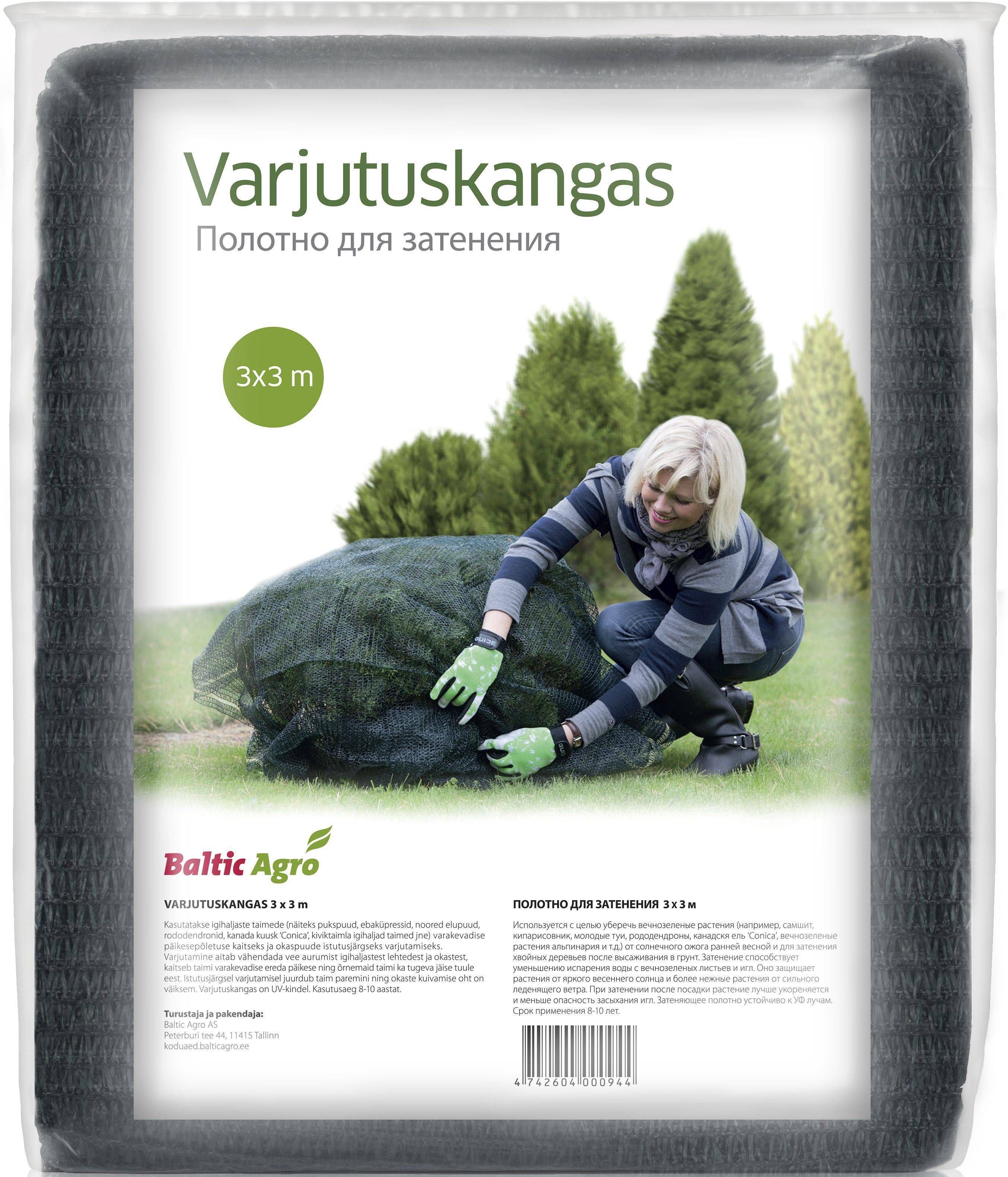 Baltic Agro varjutuskangast kasutatakse igihaljaste taimede (näiteks pukspuude, ebaküpresside, elupuude, rododendronite, kanada kuuse `Conica`, kiviktaimla igihaljaste taimede) varakevadise päikesepõletuse kaitseks ja okaspuude istutusjärgseks varjutamiseks. Varjutamine aitab vähendada vee aurumist igihaljastest lehtedest ja okastest, see kaitseb taimi varakevadise ereda päikese ning õrnemaid taimi ka tugeva jäise tuule eest. Istutusjärgsel varjutamisel juurdub taim paremini ning okaste kuivamise oht on väiksem. Varjutuskangas on ultraviolettkiirgusekindel ja 60% varjutusvõimega. Varjutuskanga kasutusaeg on 8-10 aastat. Tugev kootud materjal kannatab ka tugevamaid tormituuli.