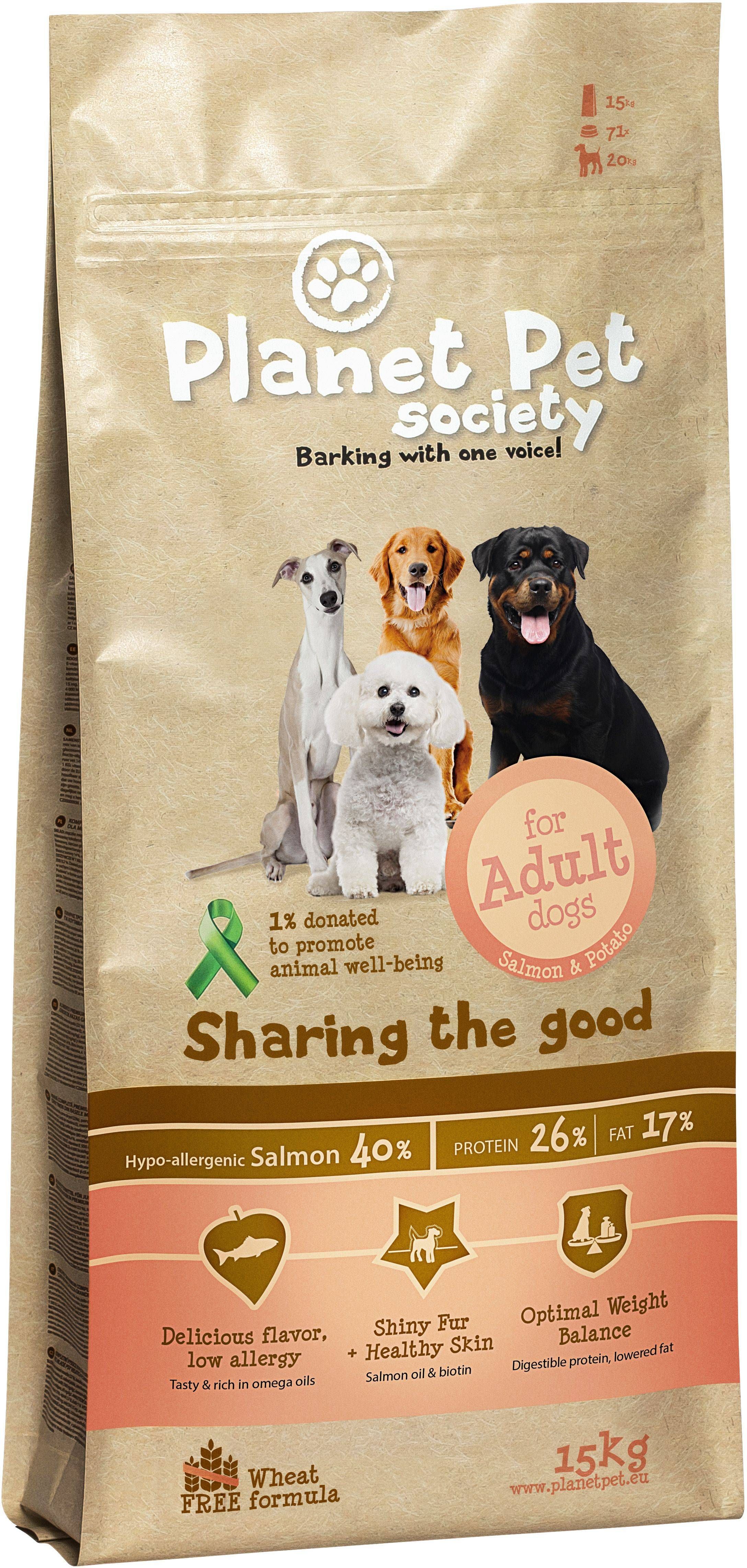 Planet Pet Society teraviljavaba kuivtoit on mõeldud spetsiaalselt koertele, kellel on tundlik magu ja toidutalumatus. Kuna koerad on loomult kiskjad, siis nad ei vaja süsivesikuid, mis on päris teraviljast. Planet Pet teraviljavaba kuivtoit koosnebpõhiliselt lõhest, millele on lisatud kartulit, puuvilju ja köögivilju. Planet Pet Society kuivtoidud ei sisalda kunstlikke värvaineid, maitseaineid, nisu. Lisatud lõheõli hoiab karvkatte läikivana. Koostis: lõhevalk 25%, lõhejahu 22%, kartulid, kartulivalk, kanarasv (säilitakse loomulikult kombineeritud tokoferoolidega), õllepärm, kuivatatud õunad (frukto-oligosahhariidide allikas), hüdrolüüsitud kanamaks, lõheõli 3%, pärmi rakuseinte ekstrakt (manno-oligosahhariidide allikas) ja tääkliilia ekstrakt. Koeratoidu netokaal on 12 kg.