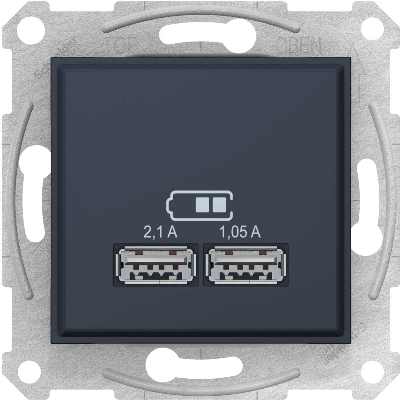 Sedna kahene USB-laadija pesa on raamita ja süvistatav (2,1 A). Sobib kasutamiseks sisetingimustes. Kaitseklass IP20 ja värvus grafiit.