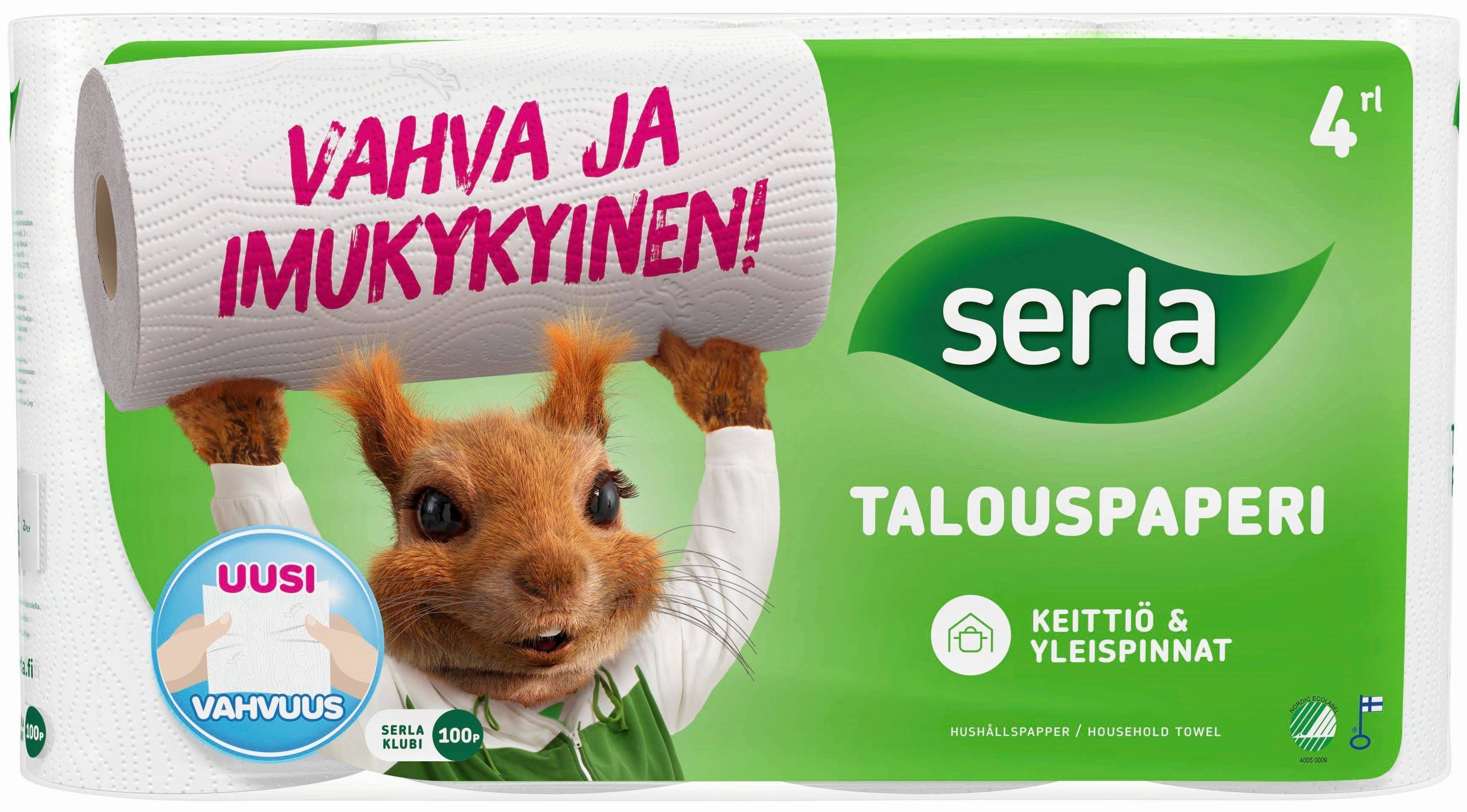 Serla kahekihiline valge majapidamispaber. Ühes rullis on 11,1 m ehk 50 lumivalget puhtast tselluloosist lehte. Pakis on 4 rulli.
