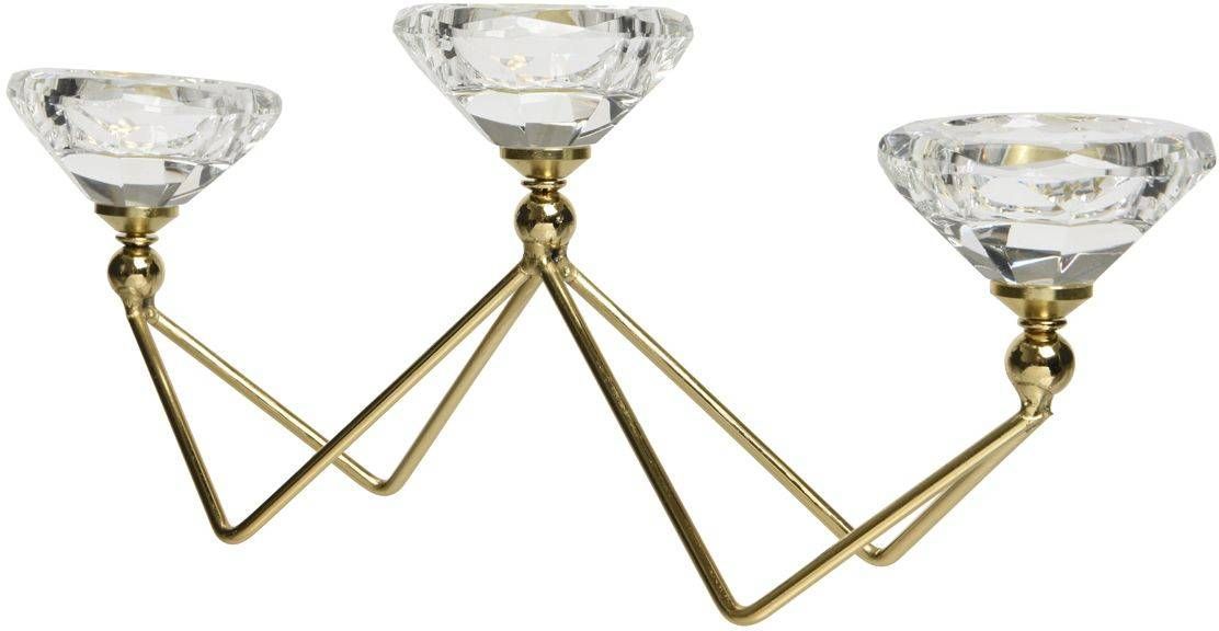 • Kuldne küünlajalg kolmele küünlale. • Mõõtmetega 29,5 x 6,5 x 12 cm. • 14-päevane tagastusõigus.