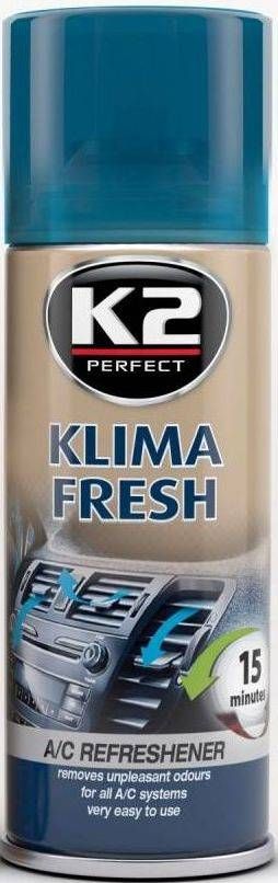 K2 puhastusaine konditsioneerile sobib kõikide autode, veoautode, põllumajandusmasinate konditsioneeri-, kliima- ja ventilatsioonisüsteemide puhastamiseks, eriti seisaku- või talveperioodi järgselt. Sobib ka töö- ja eluruumide õhu puhastamiseks. Eemaldab ja hoiab ära ebameeldivate lõhnad, mis tekivad konditsioneerimissüsteemide aurustite ning õhukanalite saastumisel, eriti talveperioodi järgselt. Tugeva antimikroobse toimega, tapab bakterid, hallitusseened ja muu halva lõhna põhjustajad, seal hulgas ka suitsuhaisu. Väga kerge kasutada - aktiivpäästikuga purk tühjeneb automaatselt peale päästikule vajutamist.