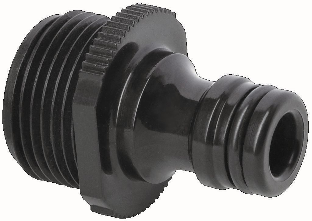 Fiskars adapter, mis sobib kõikidele Fiskarsi vihmutitele. Adapter on valmistatud plastikust ning on musta värvi.