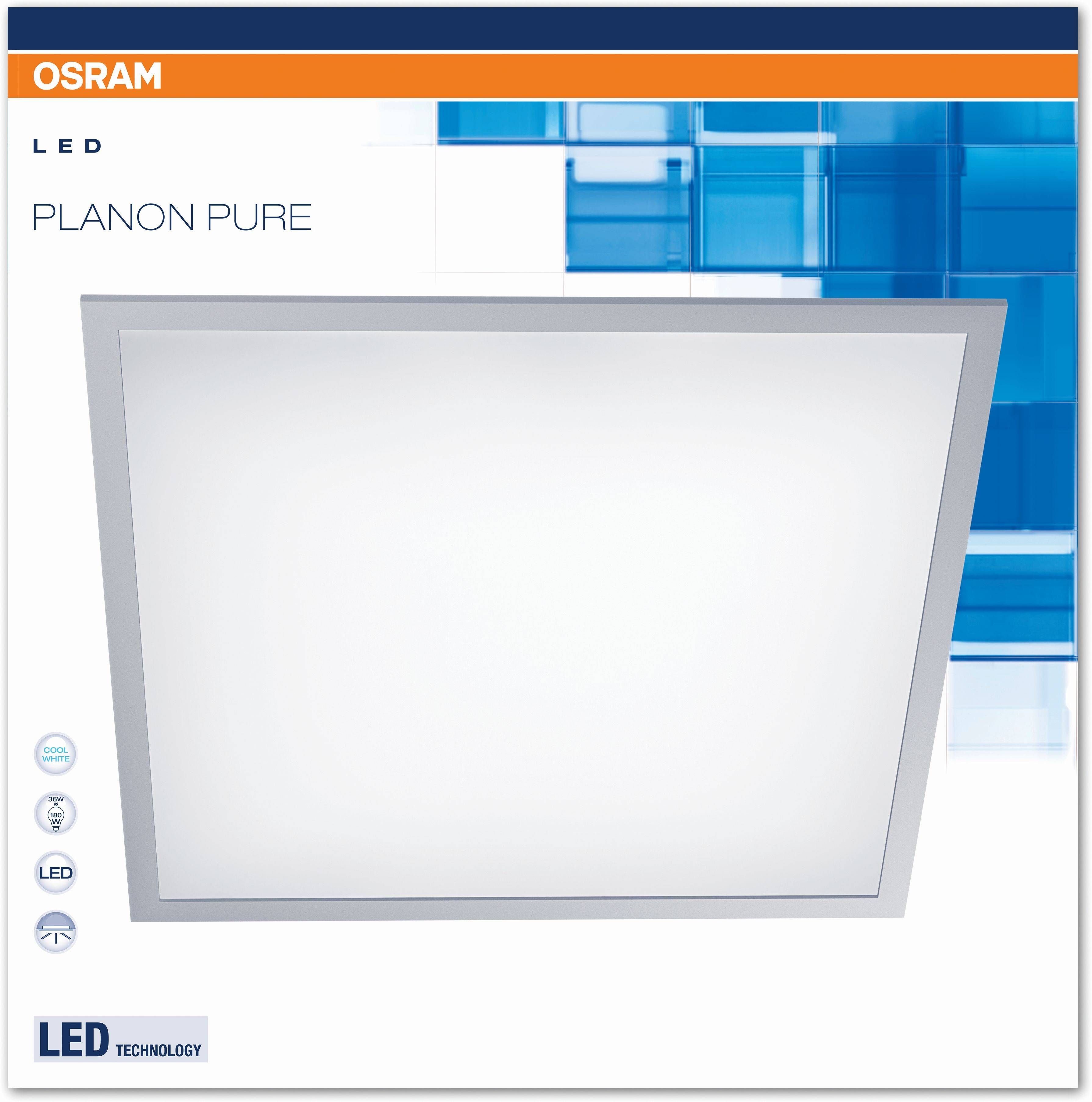 Osram LED paneel Planon Pure on võimsusega 36 W. Valgusallika valgusvoog on 3200 luumenit ning valguse temperatuur 4000 K. Mõõtmed on 60 x 60 cm.