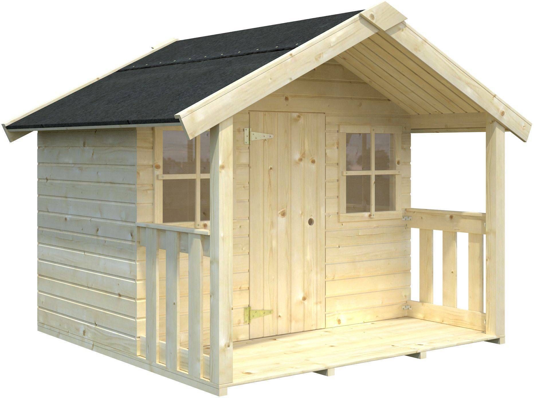 • Kuusepuidust mängumaja valmis seinaelementide ja turvalise pleksiklaasiga. • Terrassiga. • Maja tarnitakse värvimata kujul ja katusekate ei sisaldu maja komplektis. • 14-päevane tagastusõigus.