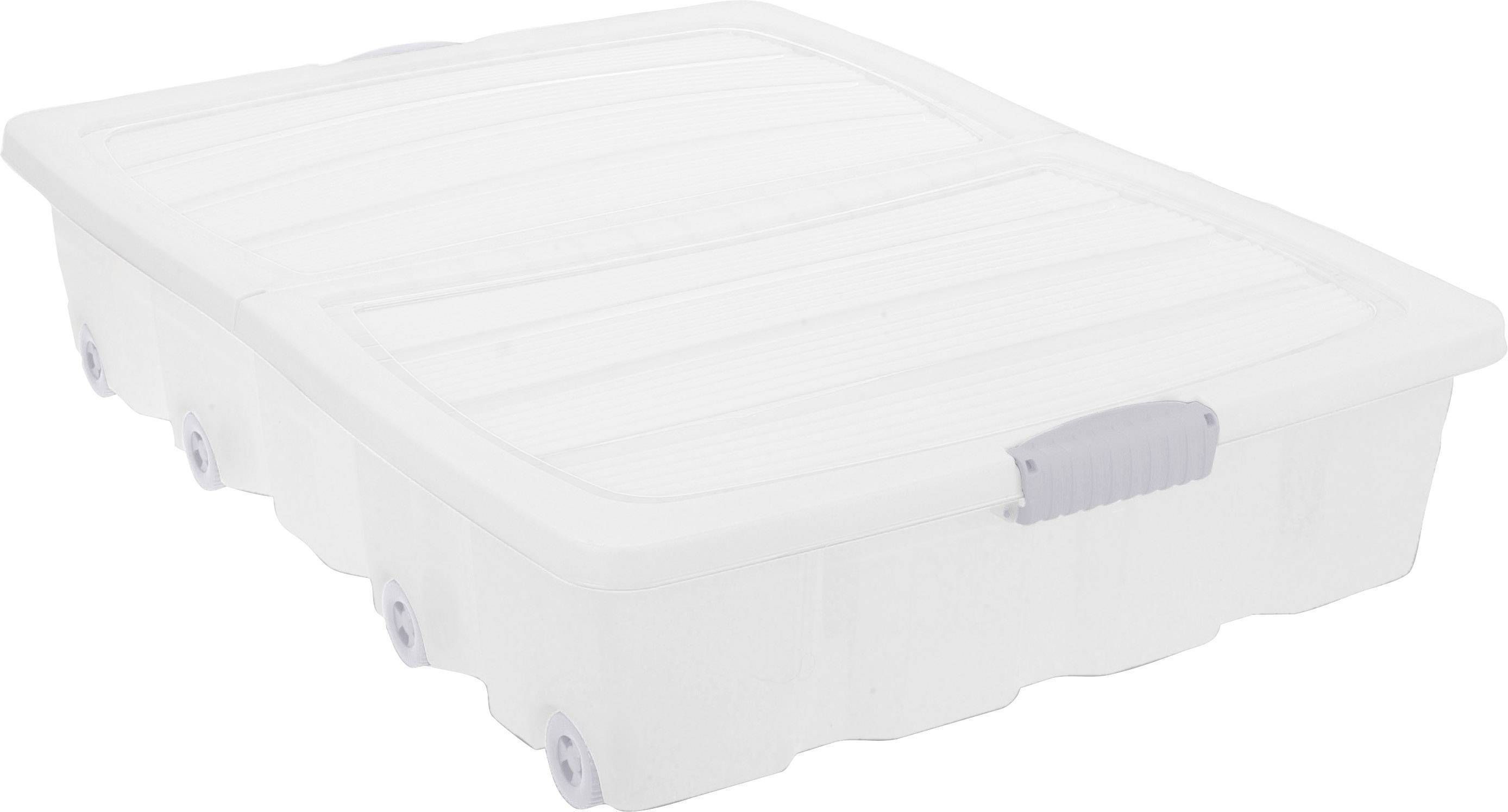 • Ratastel hoiukast kaanega. • Mõõtudega 80 x 60 x 17 cm. • Läbipaistev. • 14-päevane tagastusõigus.