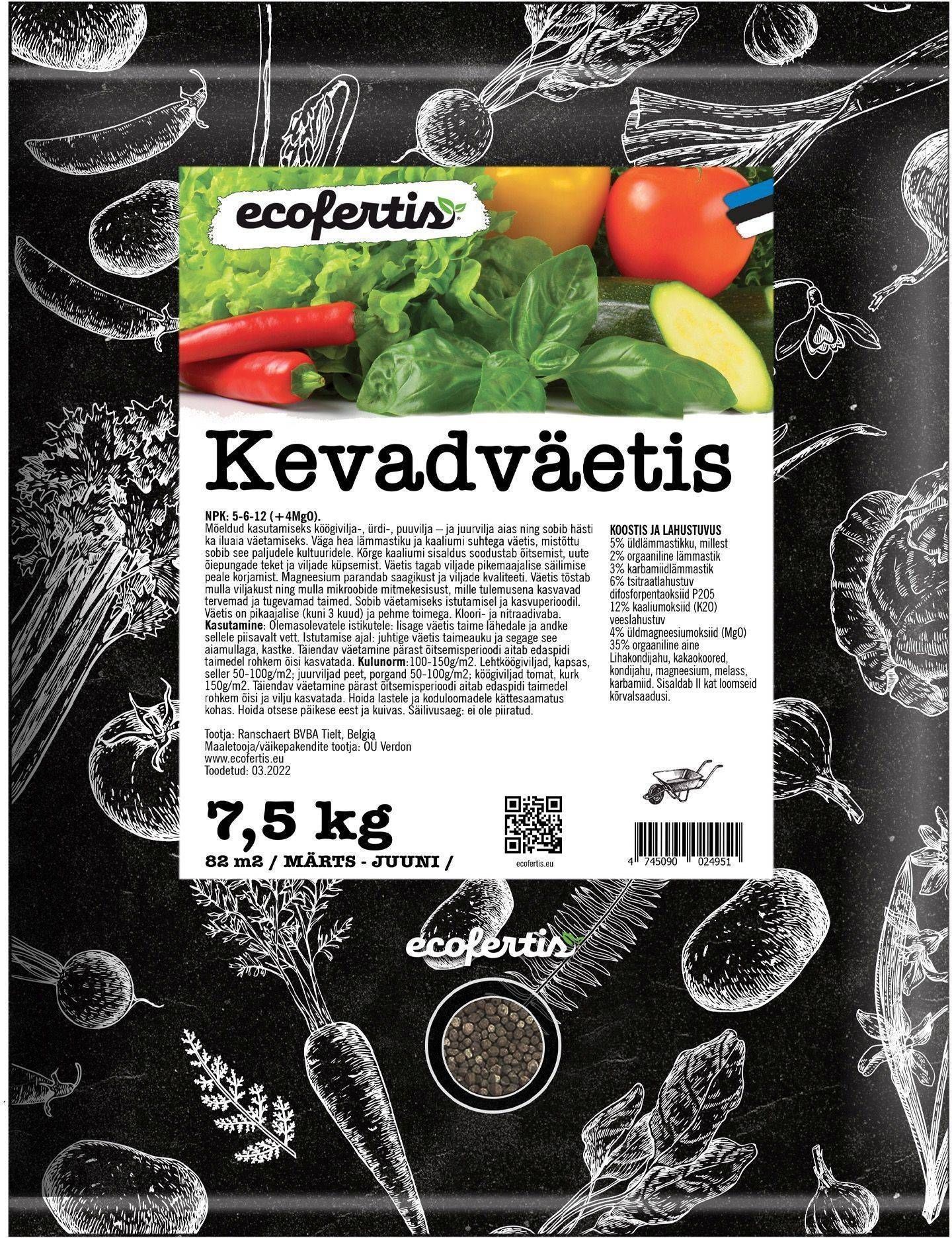 Laialdase kasutusalaga Ecofertis kevadväetis, mida saab kasutada nii lillede, ilutaimede, köögiviljade, ürtide, viljapuude, marjapõõsaste ja muru väetamiseks. Võimaldab saada taimedel erinevaid toitained. Väetise kogus on 7,5 kg.