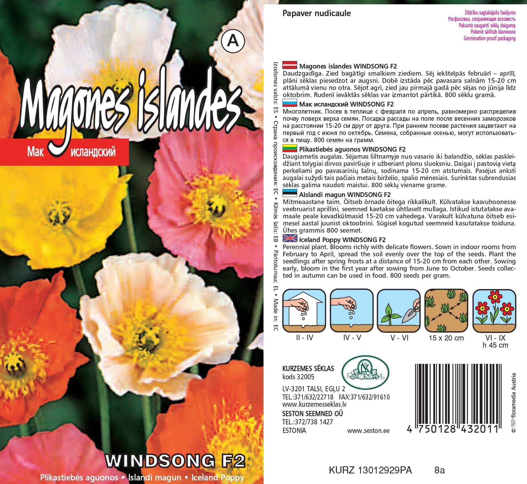 Kurzemes Sēklas Islandi magun Windsong F2 on mitmeaastane taim, mis õitseb õrnade õitega rikkalikult. Külvatakse kasvuhoonesse veebruarist aprillini, seemned kaetakse ühtlaselt mullaga. Istikud istutatakse avamaale peale kevadkülmasid 15-20 cm vahedega. Varakult külvatuna õitseb esimesel aastal juunist oktoobrini. Sügisel kogutud seemneid kasutatakse toiduna. Ühes grammis 800 seemet.