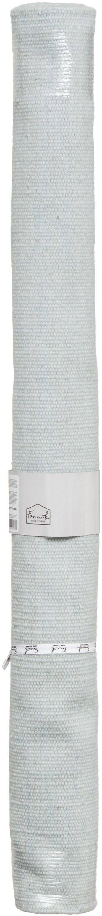 Fanni K vaip Luoto on mõõtmetega 140 x 200 cm. Villane vaip on helesinist värvi. Materjali paksus on 1800 g/m².