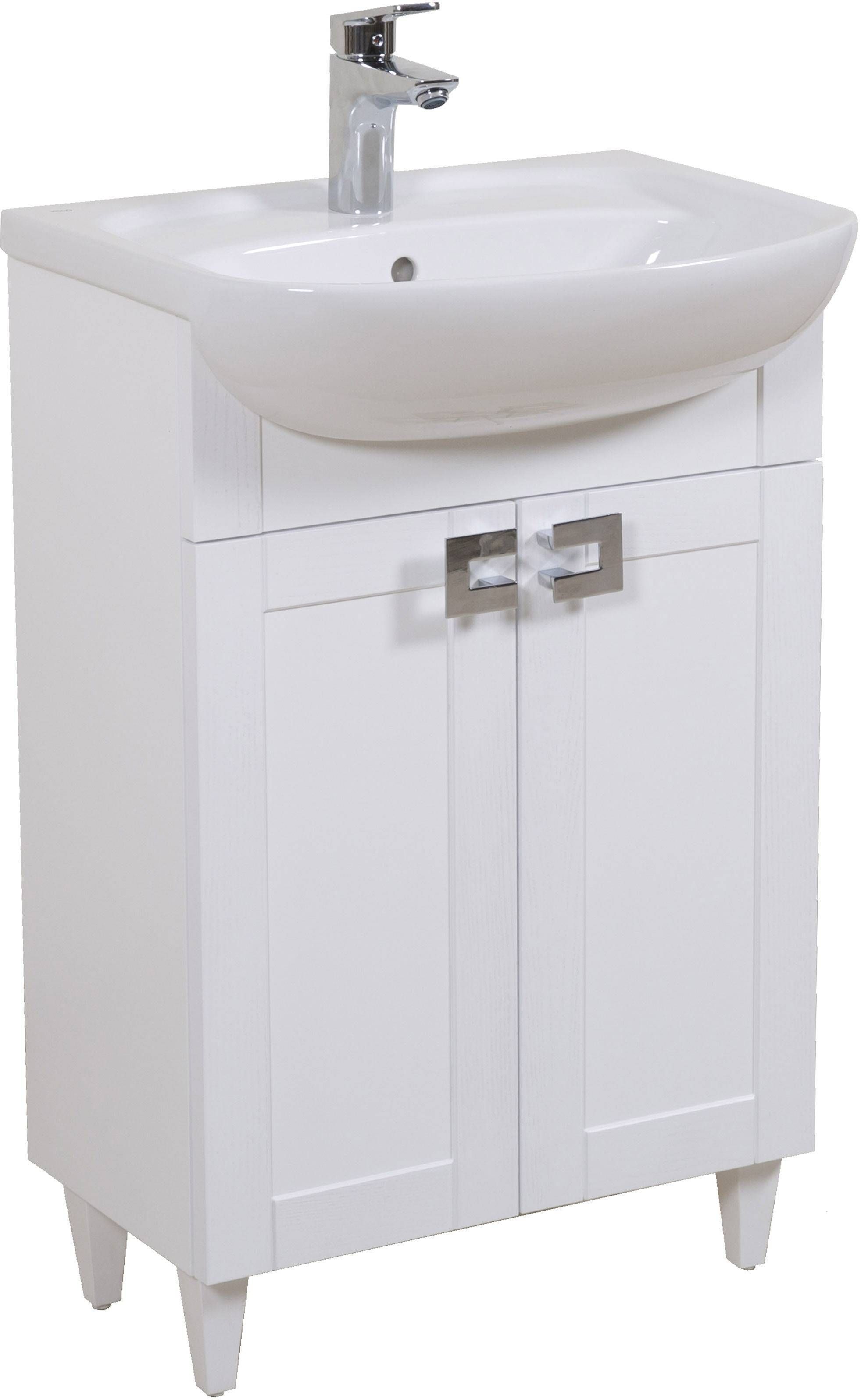 Aquarodos valge valamukapp Woodmix seeriast koos valamuga on mõõtmetega 65 x 48 x 85 cm. Valamukapp on kahe vaikselt sulguva uksega, nelja jalaga ja niiskuskindlast MDF-st. Komplektis on keraamiline valamu Nova 65 cm. Sifoon tulev eraldi juurde osta. Segisti ei kuulu komplekti.
