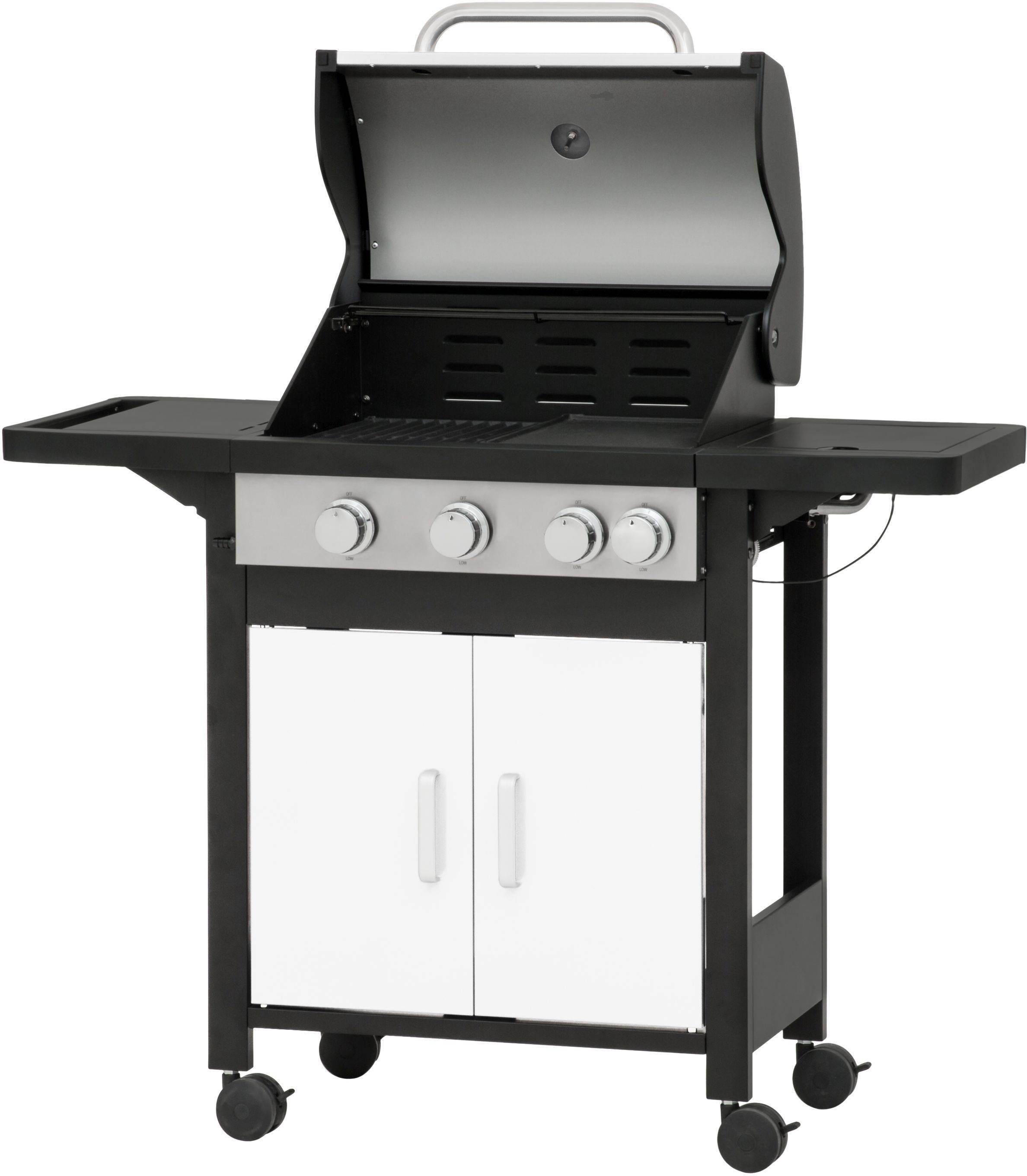 • Kolme roostevabast terasest põletiga (3 x 3,2 kW) ja külgpõletiga (3,2 kW) gaasigrill. • Grillimisala on suurusega 53 x 39 cm. • Mõõtmed on 117,6 x 48,4 x 108 cm. • Valge värvusega. • 14-päevane tagastusõigus.