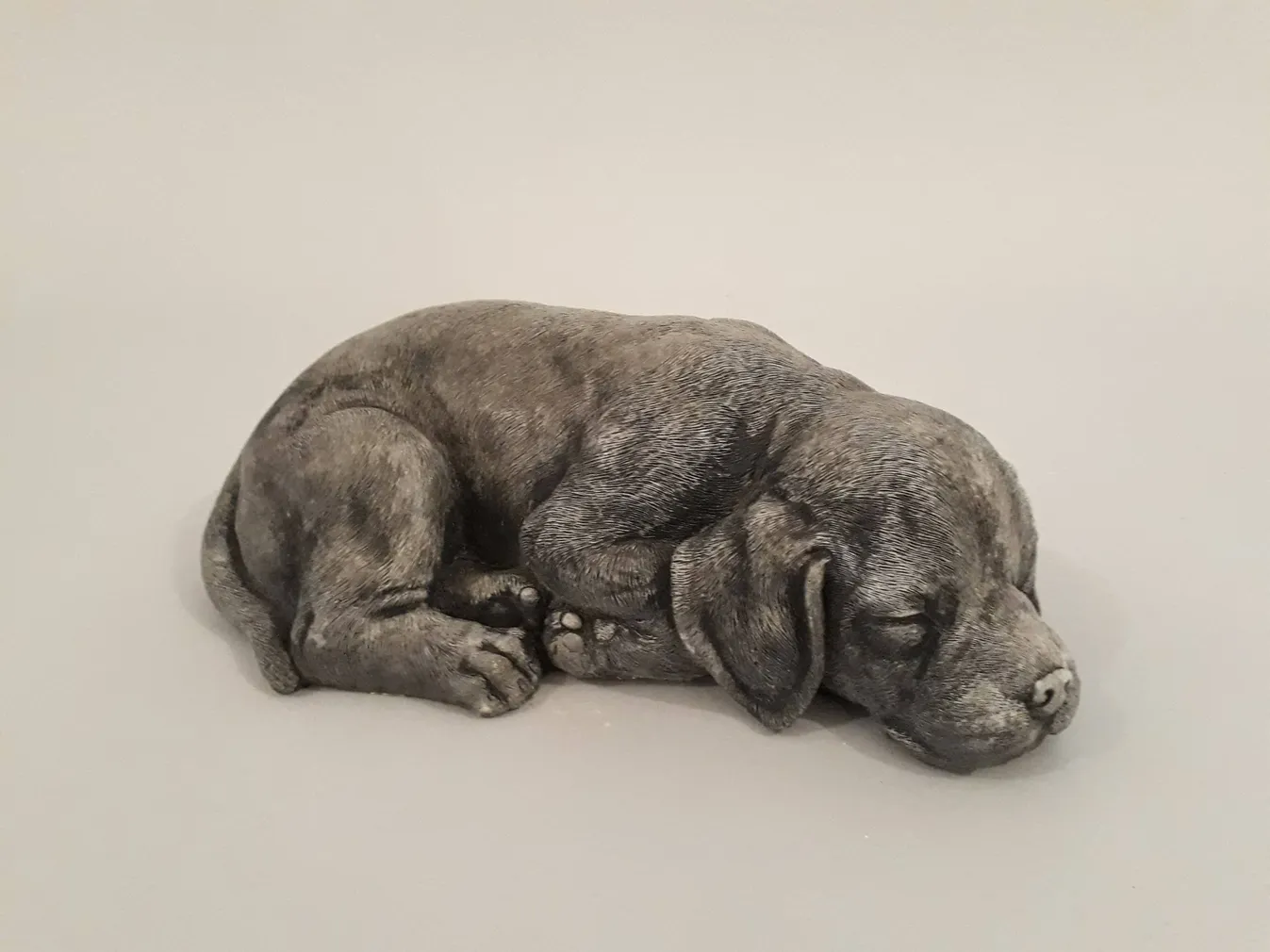 Betoonist valmistatud ilmastikukindel skulptuur lamav koer. Skulptuuri mõõtmed on 34 x 19 x 12 cm.