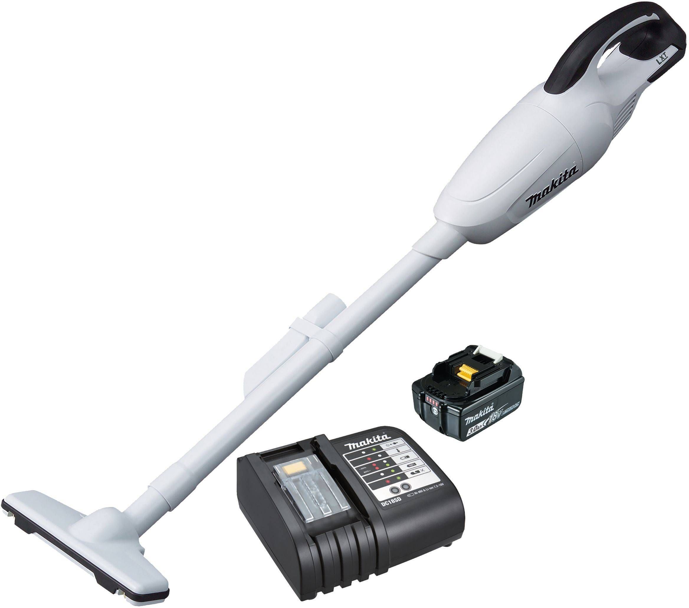 Makita DCL180SFW akutolmuimeja 18V Li-ion on suurepärase imemisvõimsusega ja madal müratase tagab mugava töö. Tolmupaagi maht on 0,65 liitrit. Keskmine laadimisaeg on 60 min. Komplekti kuulub tolmuimeja, põrandaotsik, kitsas otsik, üks 3 Ah aku, laadija, eelfilter ja fliisist filter. Tolmuimeja on valget värvi.