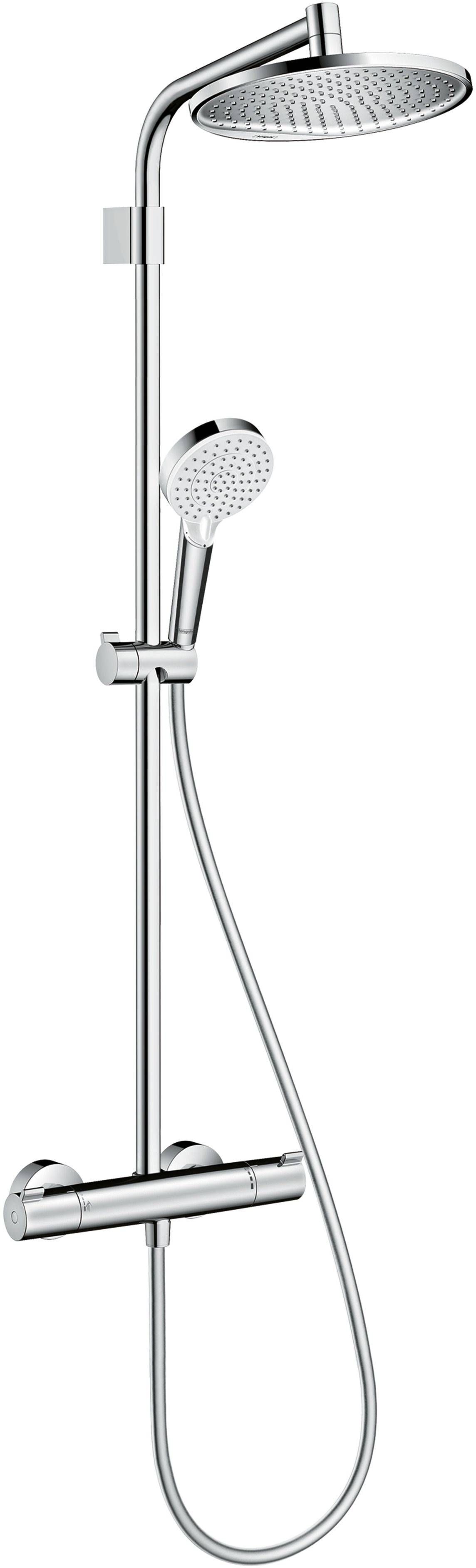 Hansgrohe dušisegisti Crometta S 240 komplektis on termostaat dušisegisti Ecostat 1001 CL, ülepeaduši ühendustoru, üladušš läbimõõduga 240 mm, 100 mm Vario 3-funktsiooniline käsidušš, dušivoolik ja kandur. Termostaat dušisegistil on turvanupp 40°C ületamiseks. Vee vooluhulk 3 bar juures 16 l/min. Ecostop nupp võimaldab piirata vee kasutamise 10 l/min. Dušisegisti on mõeldud paigaldamiseks seinale. Sobiv veeühenduste tsentrite vahemik on 150 +/- 12 mm (1/2"). Minimaalne vajalik veesurve 1 bar, maksimaalne 10 bar. Üleapeaduši toru kinnituse kõrgus on seadistatav.