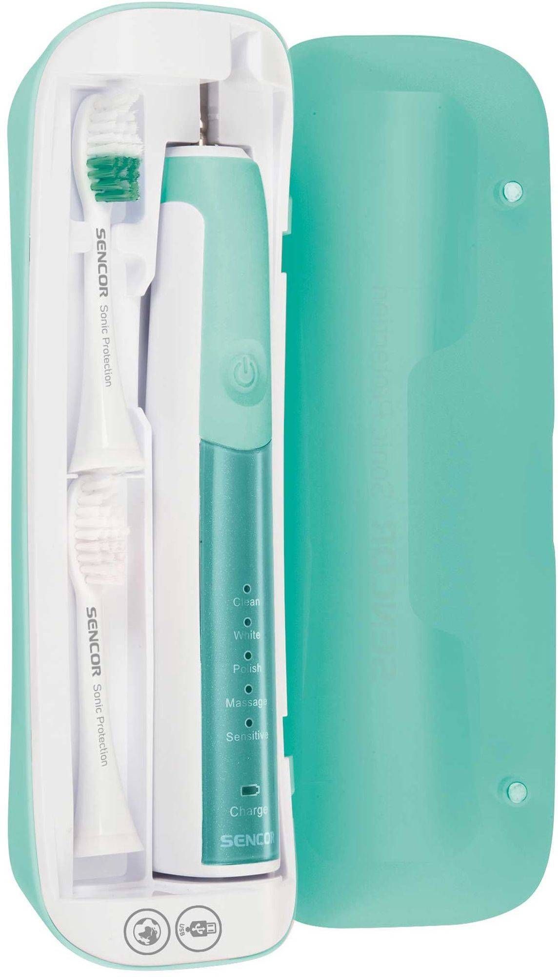 Sencor elektriline hambahari SOC2202TQ IPX7 korpusega ja LED indikaatoritega. Sonic tehnoloogiaga hambahari tagab efektiivse, hügieenilise ja professionaalse tulemuse. 45 000 korda minutis vibreeriv harjapea eemaldab efektiivselt katu ja masseerib igemeid. Hambaharjal on 5 erinevat kiirust ja tugevusastet ning taimer.