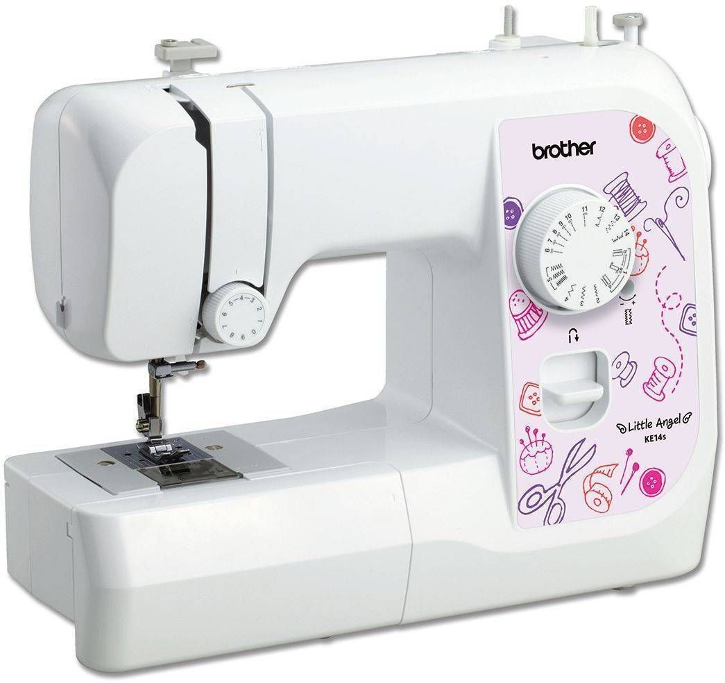 Õmblusmasin Brother KE14 on mõeldud algajatele. Masinal on 14 õmblusfunktsiooni ja sissetõmmatav õmblusnupp. Lisaks LED-valgus, horisontaalne trummel ja zigzag funktsioon. Võimalik teha 4-astmelist auku. Turvalisuse tagamiseks on õmblusmasinal sõrmekaitse, et vältida kokkupuudet nõelaga.