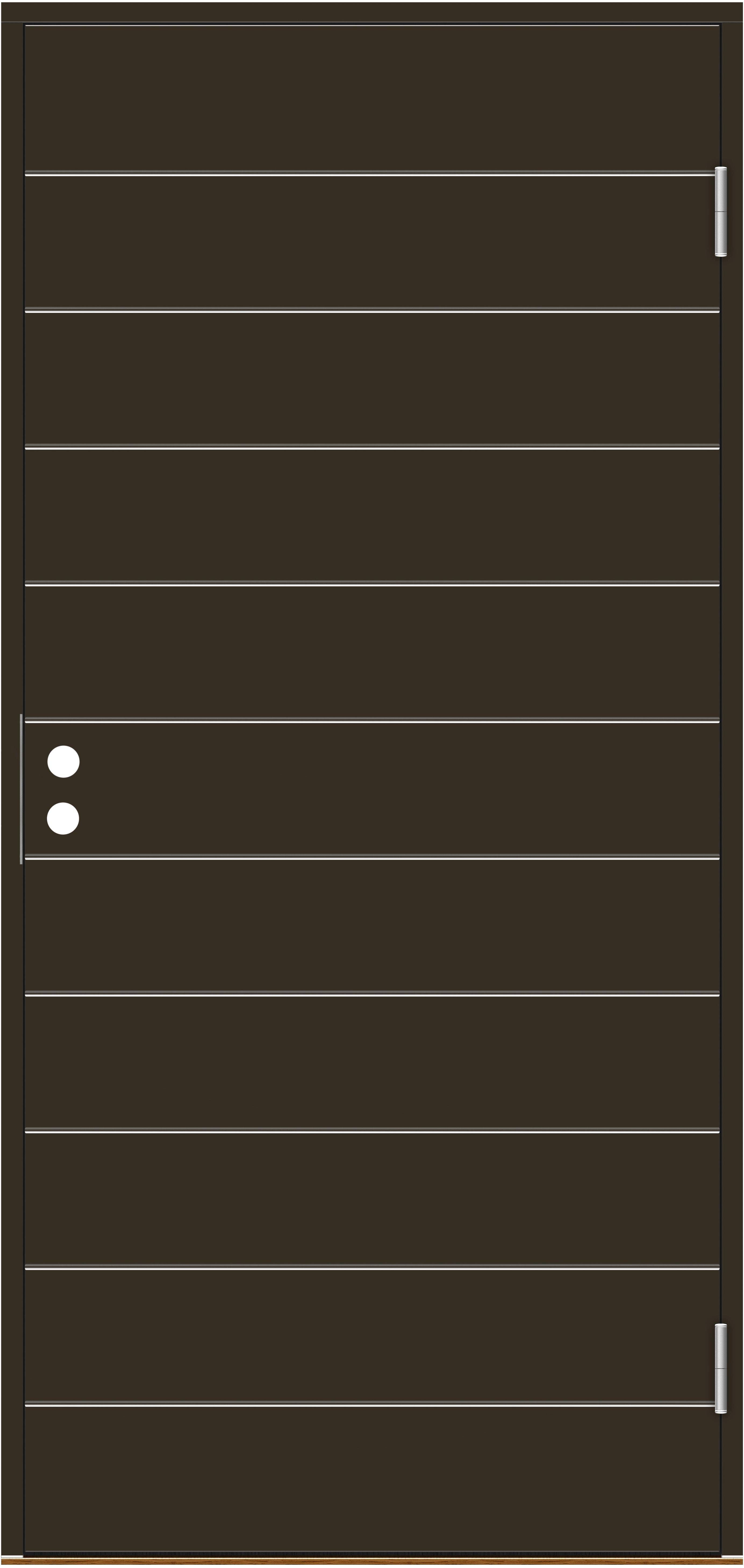 Swedoor pruun välisuks Basic B0070 on ukseavale mõõduga 9 x 21 dm, lengi mõõt on 44 x 105 mm. EPS-täitematerjaliga ja kahe alumiiniumlehega uks, millel on HDF pind, kaks hinge, silikoontihend ukses, lävepakk puitkomposiit (WPC) ning 2K-selektiivklaas. Avanemispoolel freesmuster, sulgemispool sile. Ukse käelisus on parem. Välisuks on koos lengi ja lävepakuga. Leng on kokku monteeritud ja uks hingedel. Välisukse komplekt on paigaldusvalmis. Ukseleht on ilma lukusüdamiku ja lingita. Lukuraam on ukselehes olemas.