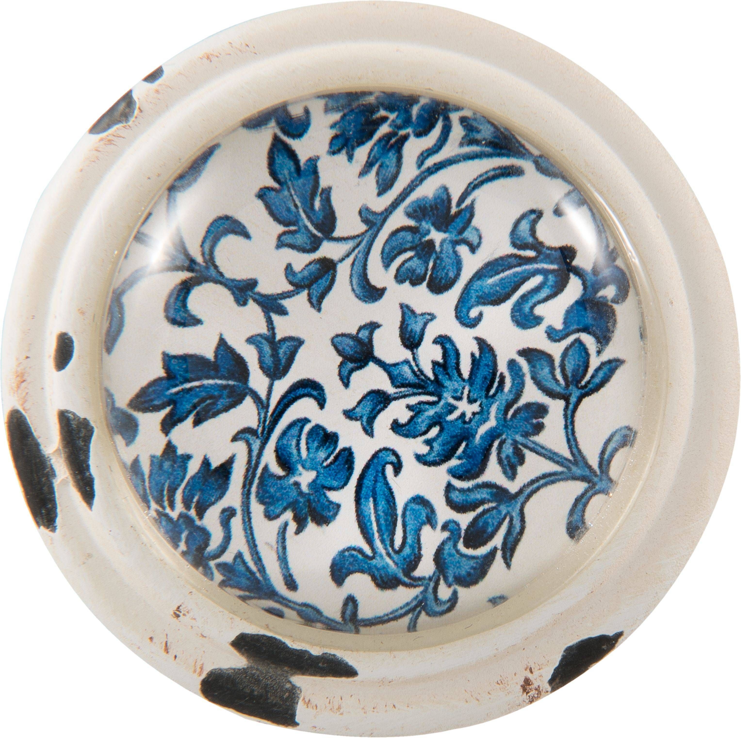 • Ümar valge kapinupp sinise klaasist keskosaga. • Läbimõõt 4 cm. • 14-päevane tagastusõigus.