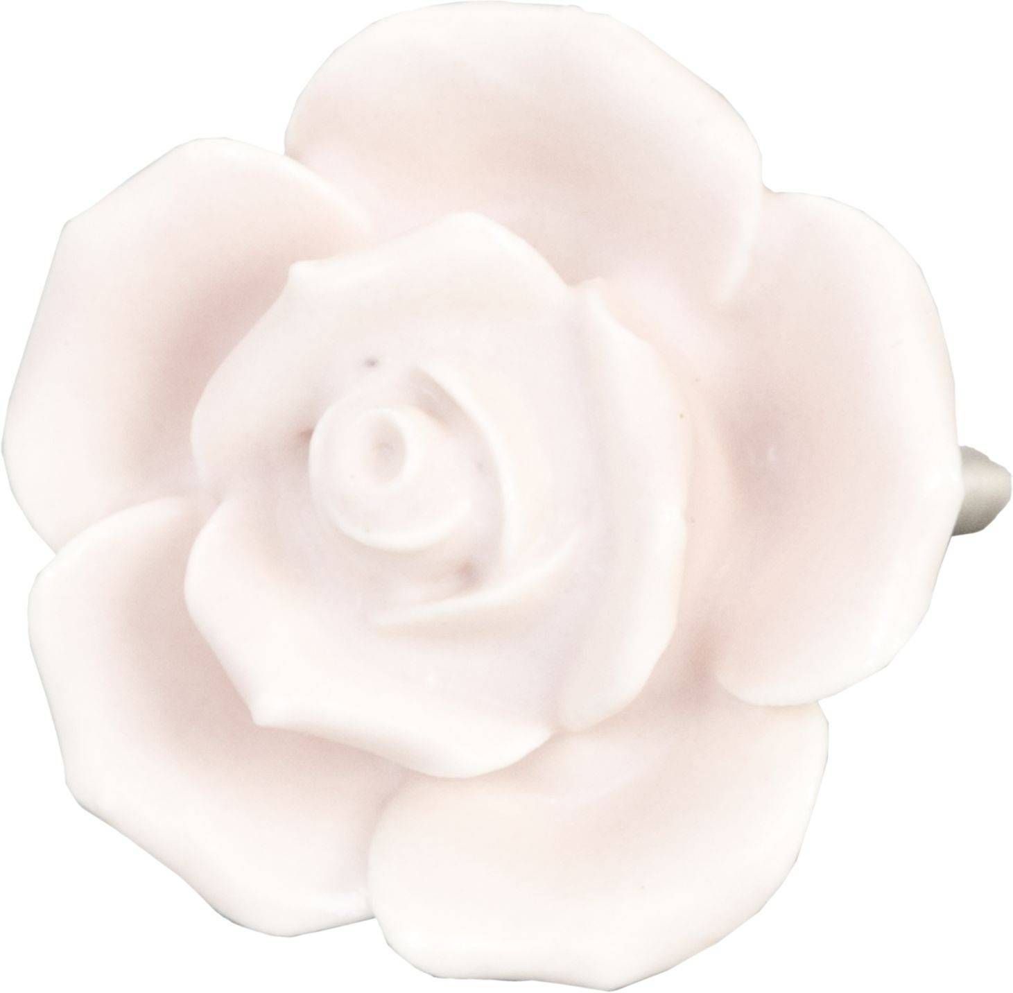 Võõp keraamiline kapinupp heleroosa roos on läbimõõduga 4 cm.