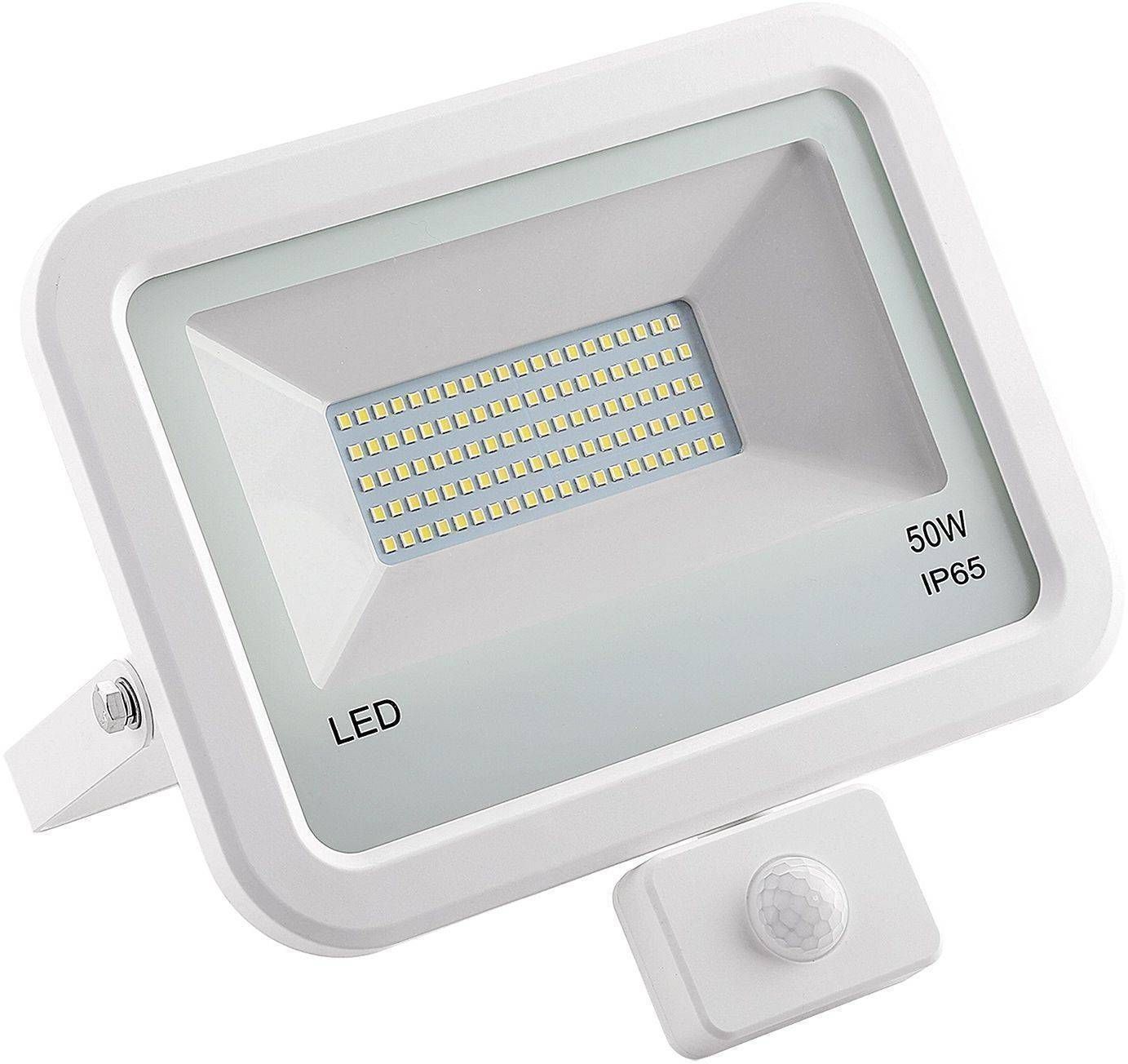Tesatek LED prožektor liikumisanduriga, mille võimsus on 50 W, valgusvoog 4000 lm ja valguse temperatuur 4000 K. Prožektori korpus on metallist ja valget värvi. Kaitseklass on IP44.