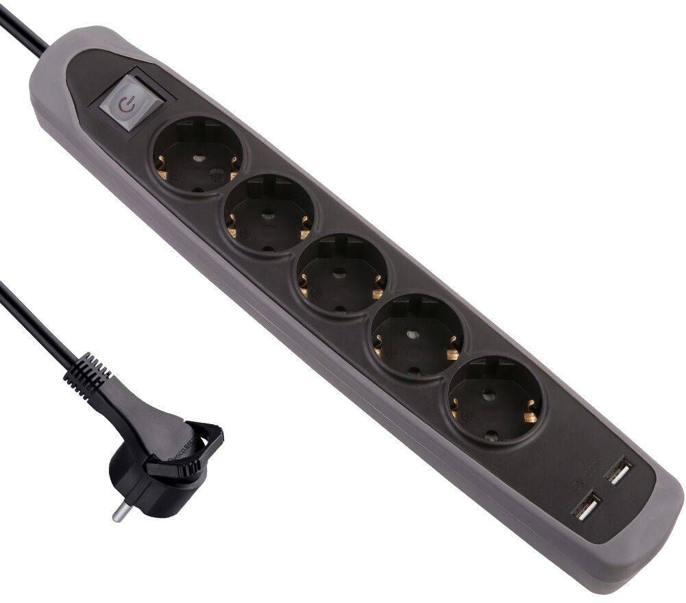 Electraline pikendusjuhe 3G1,0 mm², millel on viis pesa, lüliti ja 2 x USB pesa. Pikendusjuhtme pikkus on 2 meetrit.