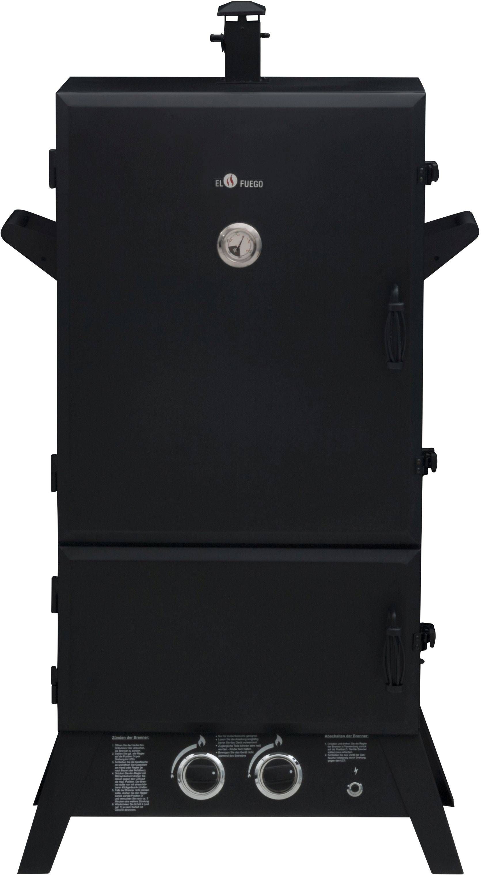 Gaasi suitsuahi Teno on mõõtmetega 80 x 50 x 145 cm. Eriti võimas ja ülikerge gaasiga töötav suitsuahi. Ahjul on kaks malmist põletit - 2,93 kW = 5,86 kW, mis tekitab ahju ühtlast soojust ja suitsu. Suitsuahjul on 6 tk kroomitud võret suuruses 56 x 36 cm. Suitsuahju ülaosas on konksud, kuhu saab terveid kalu riputada. Laastupann ja põleti asuvad eraldi korpuses, mida saab avada suitsetamise ajal, kaotamata temperatuuri suitsuahjus. Käepidemed kergendavad tõstmist ja muudavad ahju transportimise. Korstnal on ventiil, millega saab reguleerida ahju suitsu hulka. Termomeetri abil saate kontrollida ahjus olevat temperatuuri.