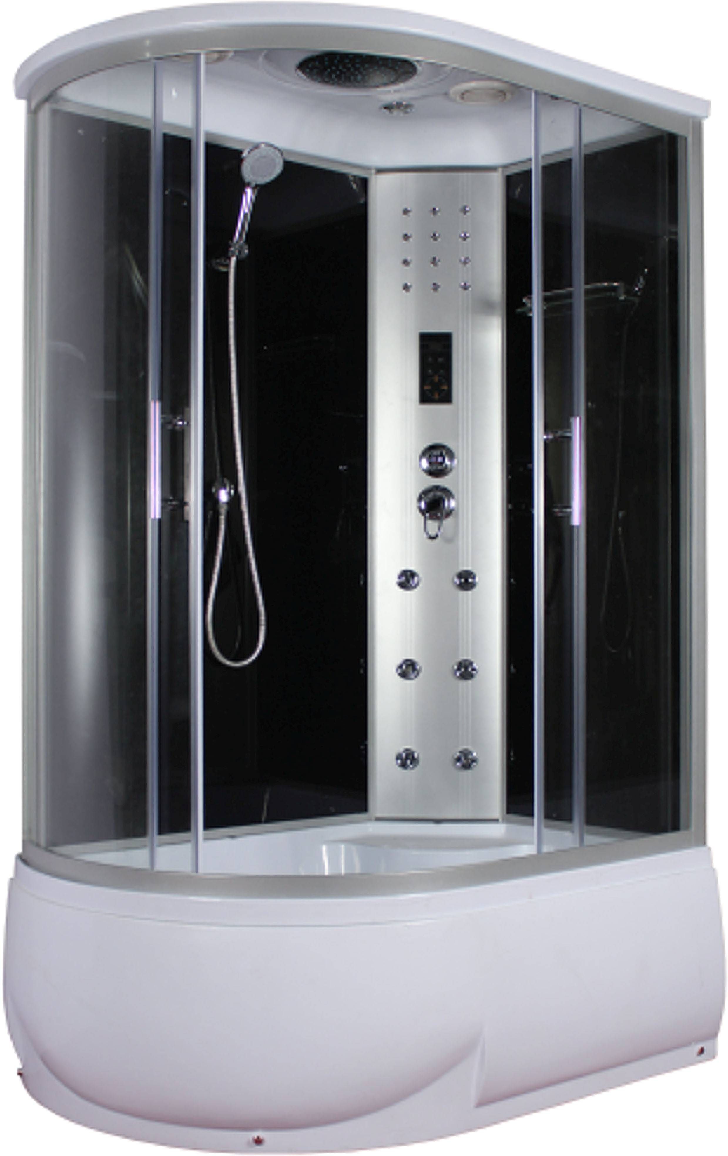 • Massaažikabiin mõõtmetega 120 x 80 x 215 cm. • 45 cm kõrgune istekohaga alusvann. • Uksed ja esisein on kirka 5 mm turvaklaasiga. • 6 seljamassaažidüüsi, segisti, laedušš, käsidušš, juhtpaneel, valgusti laes ja seinas, raadio, ventilaator, riiul, komplektis pop-up süsteemiga äravoolupesa ja sifoon. • Tegemist on vasakukäelise mudeliga, st kumer ots jääb eestvaates vasakule. • 14-päevane tagastusõigus.