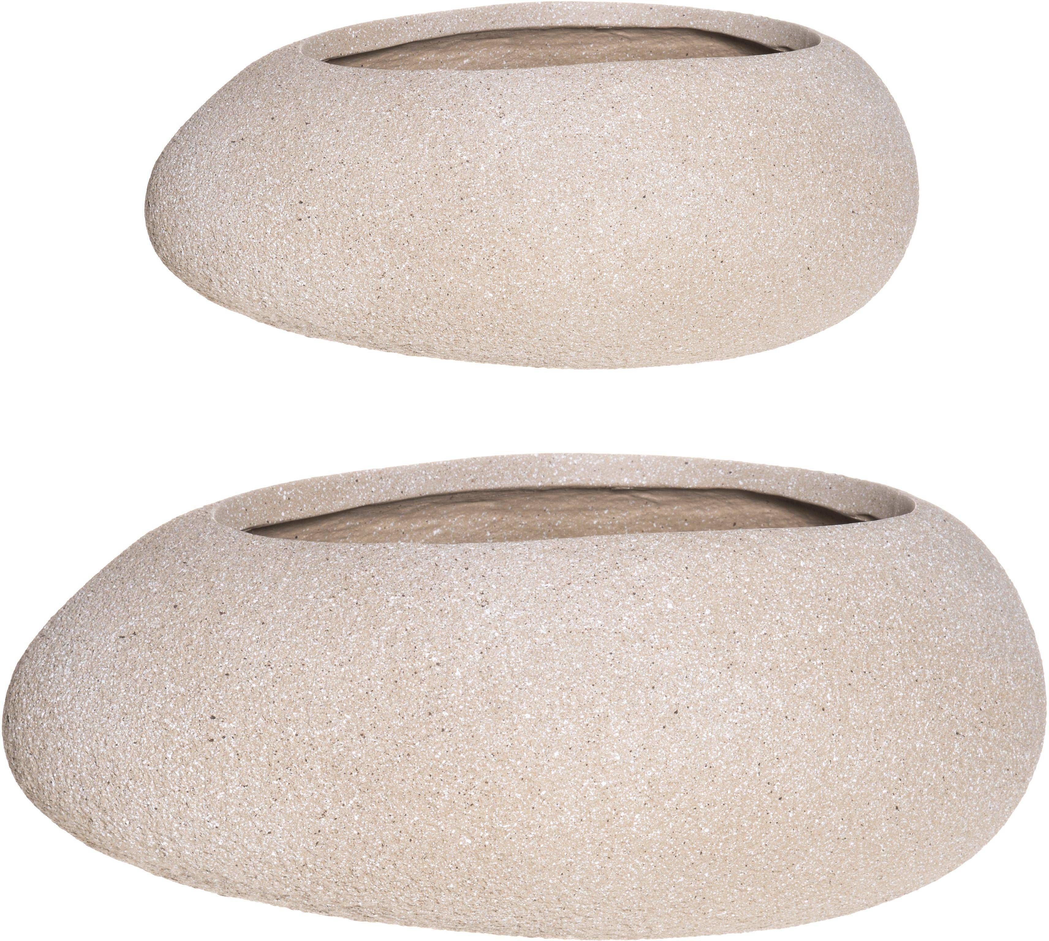 4Living ovaalse kujuga beeži värvi savist vaasid. Komplektis on vaasid mõõtmetega 69,5 x 49 x 26 cm ja 49,5 x 34,5 x 19,5 cm. Vaasid on kuuma- ja külmakindlad (-20° kuni + 40°) ning UV-kindlad.