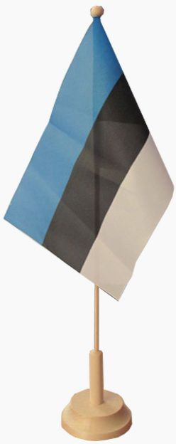 Sini-must-valge laualipp on mõõtmetega 15 x 24 cm. Lipu jalg on puidust.