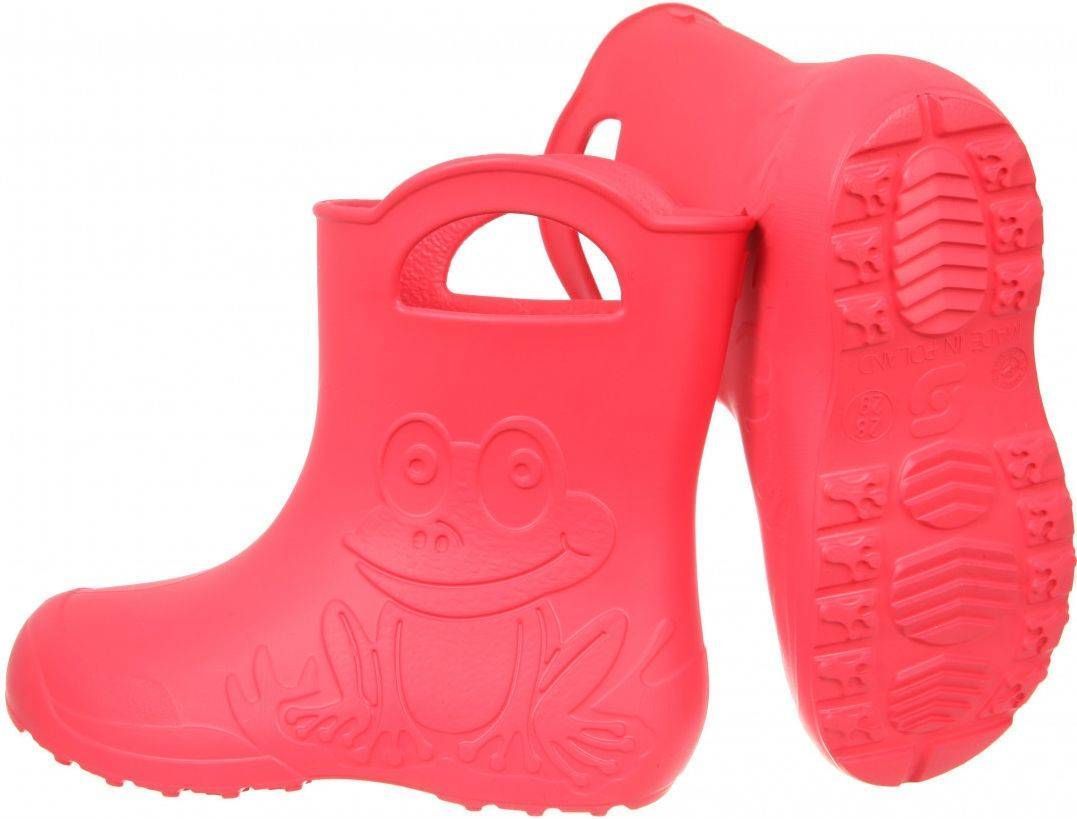 Camminare Frog kõrgekvaliteedilised EVA materjalist termokummikud on disainitud ekstra laste jala eripärasid arvesse võttes. EVA materjalist kummikud on imekerged, seega ka kõige pisem kandja tunneb kummikut kandes mugavust. Kanna osa on tugevdatud parema stabiilsuse, mugavuse ja kaitse saavutamiseks. EVA materjal on jalas väga mugav ja seda on väga lihtne puhastada. Termosokiga on kummikuid võimalus kanda ka talvel. Kummikud on punast värvi ja suurus 24/25.