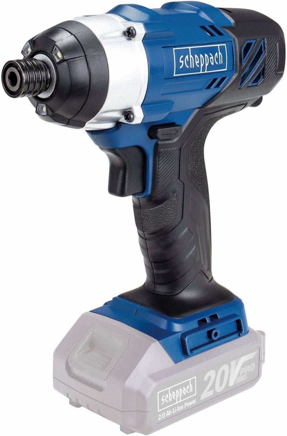 Scheppach CID150-20ProS akulöökkruvikeeraja integreeritud töötulega. Akupinge on 20 V, pöörete arv tühikäigul 1 / 2: 0 - 3000 /min, maksimaalne löögikiirus 1 / 2: 0 - 3000 /min, maksimaalne väändemoment 150 Nm ja tööseadise kinnitus: sisemine 1/4". Tegemist on ilma aku ja laadijata mudeliga.