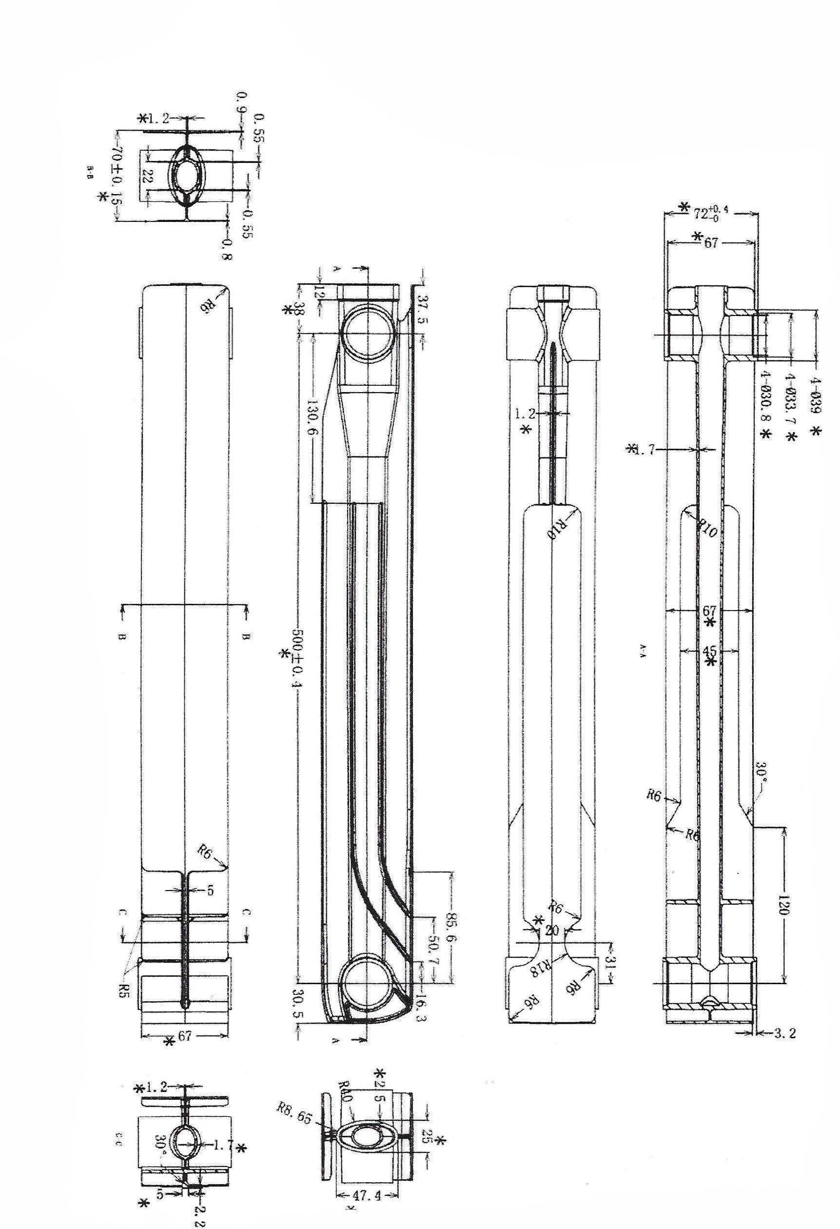 Hermes H-500 valge alumiiniumist keskkütteradiaator 4 x G 1”SK külgühendusega ja 10 ribiga. Ühenduste vaheline kõrgus on 500 mm. Radiaatori võimsus on 818 W 75/65/20⁰C, maksimaalne rõhk 1,6 Mpa ja maksimaalne temperatuur 95⁰C. Radiaator on mõõtmetega 7,1 x 70 x 57,6 cm. Ribide arvu võib muuta, maksimaalne ribide arv 13 tk.