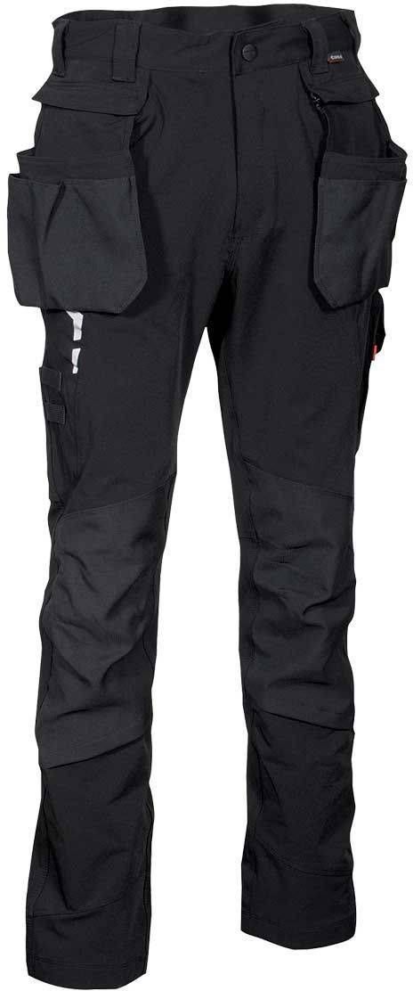 • 2 eemaldatavat ripptaskut ees, 2 laia krõpsuga taskut tagaküljel, haamriaas, reguleeritavad põlvekaitsmetaskud, välised naelataskud, mõõdulinditasku.