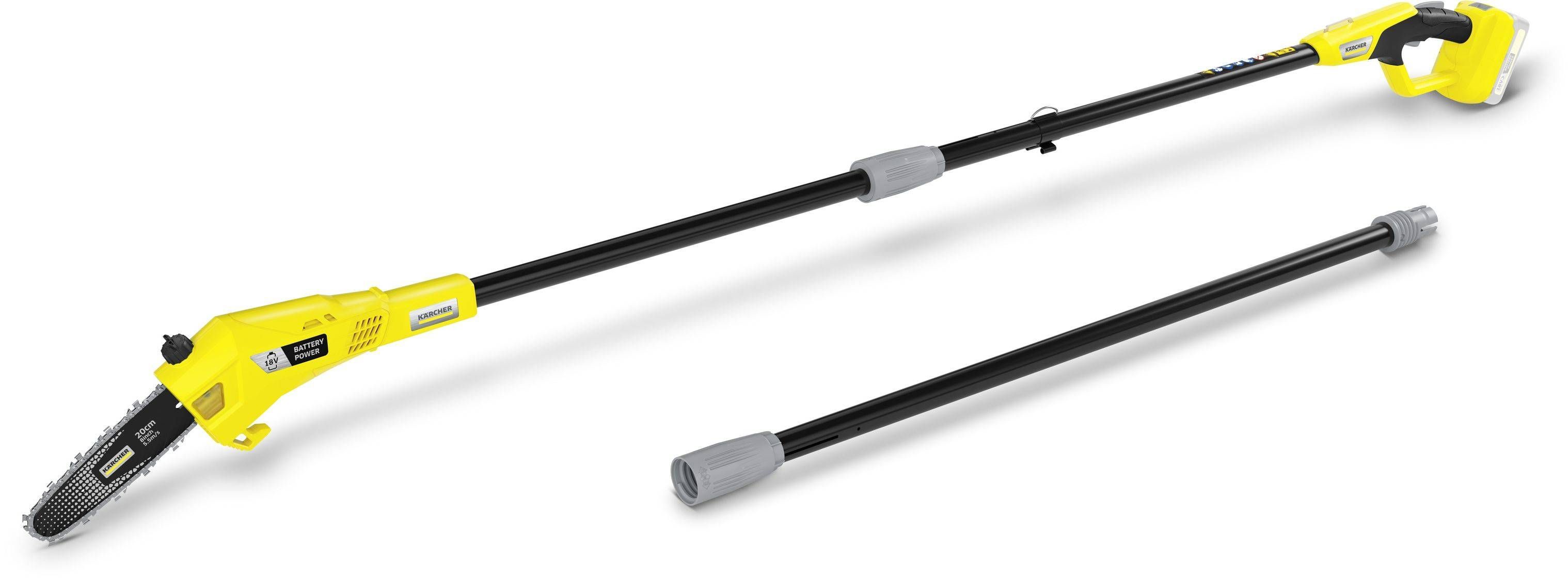 Tänu oma praktilisele pikendusele sobib Kärcheri akutoitel kettsaag PSW 18-20 ideaalselt kõrgete puude hooldamiseks. Lõiketera optimeeritud 30-kraadiline nurk võimaldab oksi lõigata kuni 4 meetri kõrguselt, samas kui kasutaja ise saab ohutult maa peal olla. Keti lihtne pingutamine ja automaatne õlitusfunktsioon muudavad seadme kasutamise vaevatuks. Komplekti kuuluv õlarihm muudab sae kasutamise lihtsaks isegi pikkade tööperioodide vältel. Seadme komplekti kuuluvad saag, tera, kett, tera kaitse, õlarihm, kuuskantvõti keti pingutamiseks ja õlipudel. Tegemist on ilma aku ja laadijata mudeliga.