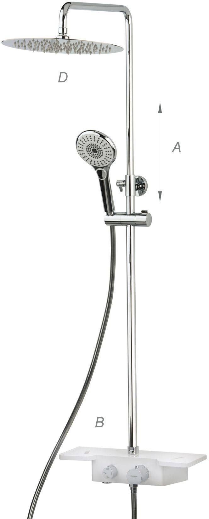 • Dušitermostaadi komplekt kõrgekvaliteedilise ja kauakestva kroomviimistlusega. • Komplektis leidub moodne Ø300 mm roostevabast terasest üladušš ning mitmefunktsiooniline käsidušš koos massaažifunktsiooniga. • Stiilne ja praktiline segisti korpuse pealisosa on kasutatav vannitarvikute riiulina. • 14-päevane tagastusõigus.