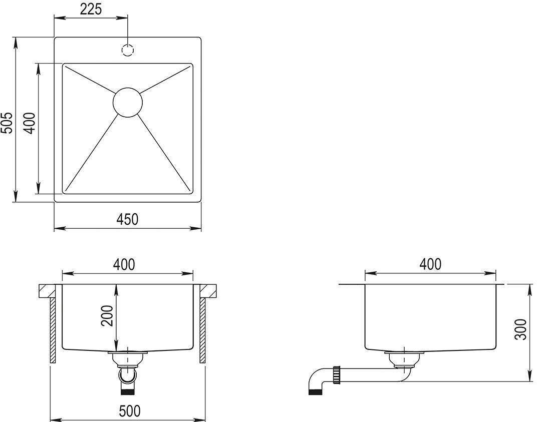 Ristkülikukujuline valamu on mõõtmetega 45 x 50,5 x 20 cm. Valamul on sisse lõigatud segistiava, paigaldatakse töötasapinna sisse. Aluskapi laius peab olema vähemalt 50 cm. Äravooluava on 89 cm, ülevool vertikaalne. Komplekti ei kuulu äravoolupesa ega sifoon.