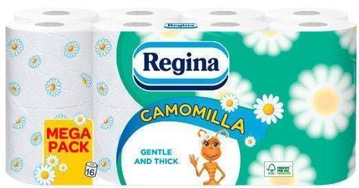 Regina Camomille on pehme ja vastupidav 3-kihiline õrna kummeli aroomiga tualettpaber. Valmistatud 100% esmaklassilisest tselluloosist. Pakendis on 16 rulli.