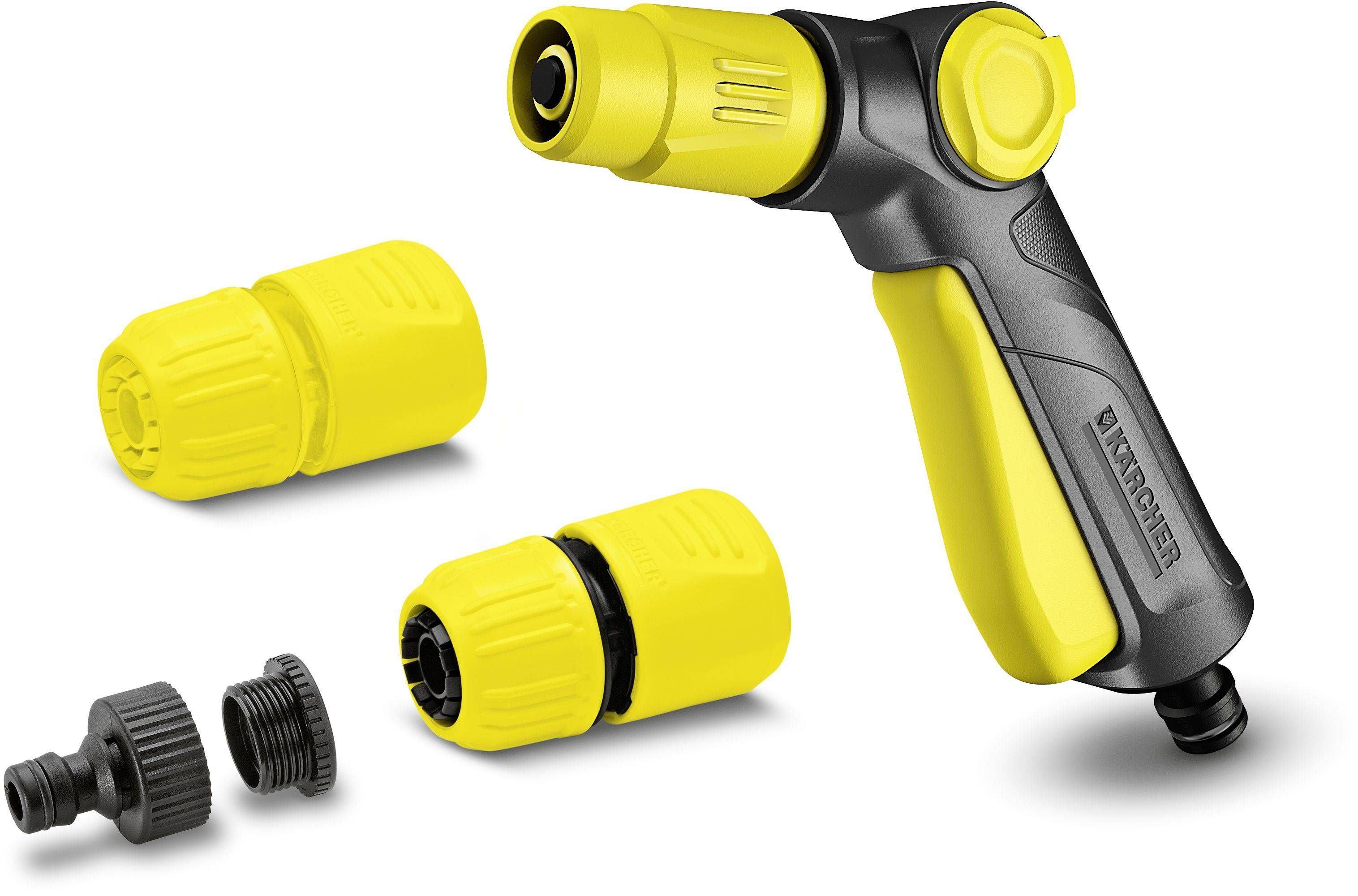 Kärcher pihustuspüstol (nr 2.645-265.0) lihtsustab tööd tänu lukustusfunktsiooniga käepidemele, mis tagab veevoolu pideva hoidmise. Lisaks saab pidevalt reguleerida 2 pihustusmustrit: punkt- ja koonusjuga. Seda saab kasutada kas lille- ja taimepeenarde kastmiseks või terrasside või aiamööbli suurema mustuse eemaldamiseks. Lisaks pihustuspüstolile sisaldab komplekt G3/4 kraaniliitmikut G1/2 üleminekuga, samuti 2 universaalliitmikut (üks Aqua Stopiga). Aqua Stopiga liitmik hoiab ära veevoolu aiavooliku otsast, isegi kui näiteks eemaldatud otsiku korral kraan on lahti. Lisaks sobivad universaalliitmikud kõigi tavaliste läbimõõtudega aiavoolikutele. Muide, Kärcheri otsikud ja liitmikud ühilduvad kõigi tuntud kiirkinnitussüsteemidega ja neid saab probleemideta ühendada teie aiavoolikuga.