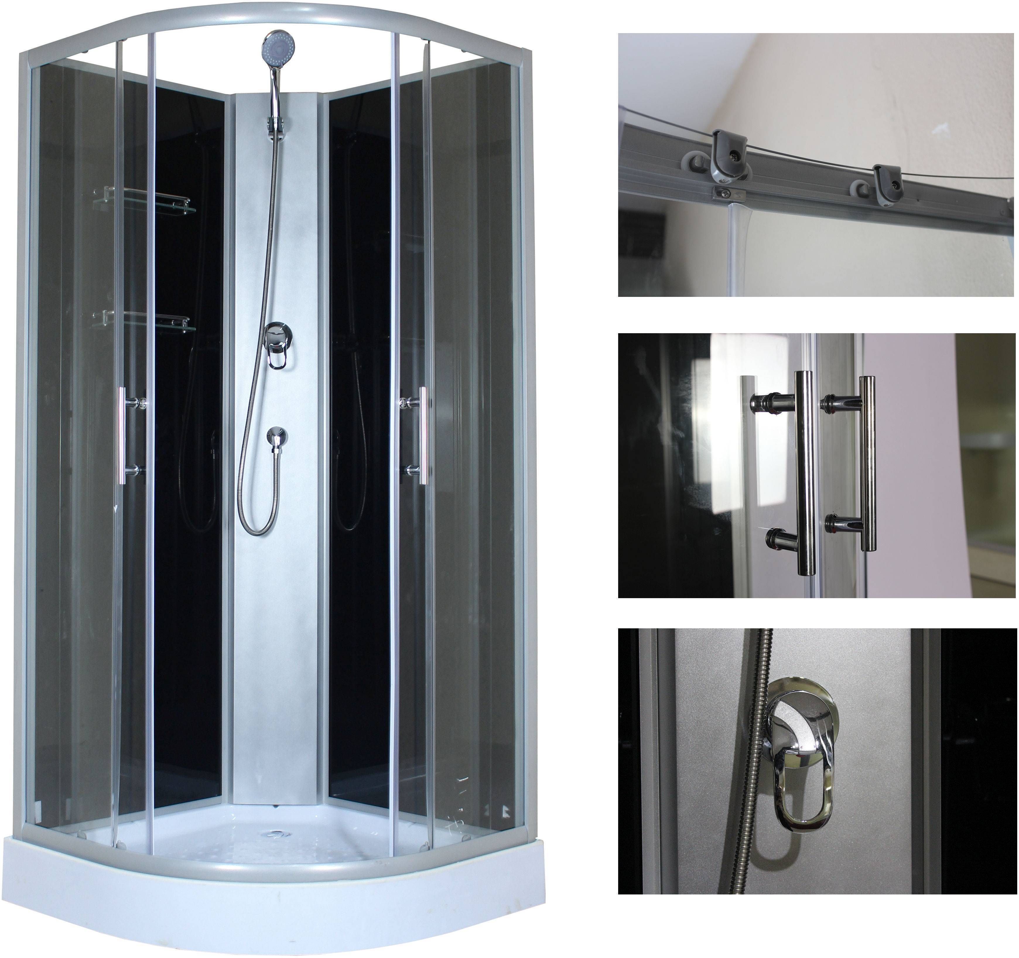 • Dušikabiin mõõtmetega 90 x 90 x 198 cm ja 15 cm kõrguse alusvanniga. • Uksed ja esisein on toonitud 5 mm grafiidist turvaklaasiga ja tagasein 4 mm mustast turvaklaasist. • Komplektis on segisti, käsidušš, 2 riiulit, äravoolupesa koos sifooniga ja alus koos jalgadega. • 14-päevane tagastusõigus.