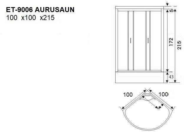 • Aurusauna mõõtmed on 100 x 100 x 43 cm ja alusvanni kõrgus 215 cm. • Toonitud 5 mm turvaklaasid. • Kroomitud tugevdatud alumiiniumraam. • Komplektis on segisti, duššilift, käsidušš, laedušš, seljamassaž, ventilaator, juhtimisekraan, raadio, valgus, klaasriiul, iste ja aurugeneraator. • 14-päevane tagastusõigus.