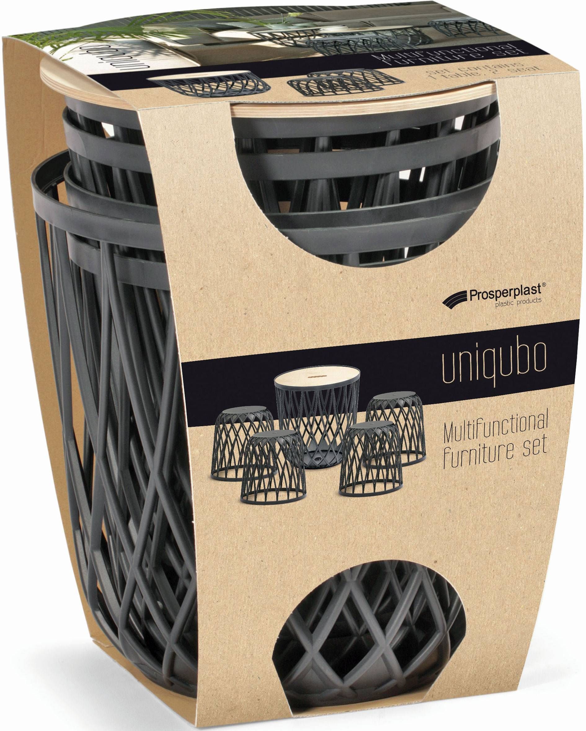 Prosperplast 5-osaline mööblikomplekt sobib hästi aeda, terassile või rõdule. Komplekti kuulub 4 tooli ja laud. Mööbel on valmistatud kergest, kuid vastupidavast materjalist. Seda on kerge puhastada ja see on ilmastikukindel. Mööblikomplekt on antratsiit värvi.