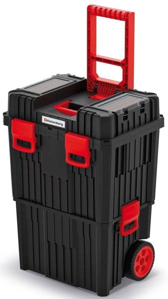 Kistenberg Heavy tööriistakast. Suured rattad hõlpsaks transportimiseks, tugevdatud polümeeride segust valmistatud moodulkorpus, tugevdatud seinakonstruktsioon, vastupidav kokkupandav käepide ABS-st, vastupidavad ABS-kinnitused. Tugev tihend tagab, et toode on tolmu- ja veekindel. Sees on funktsionaalne kandik, läbipaistvad polükarbonaadist kattega organiseerijad, vaheseinad. Transpordiks saab lahti võtta. Mõõtmed on 45 x 36 x 64 cm.
