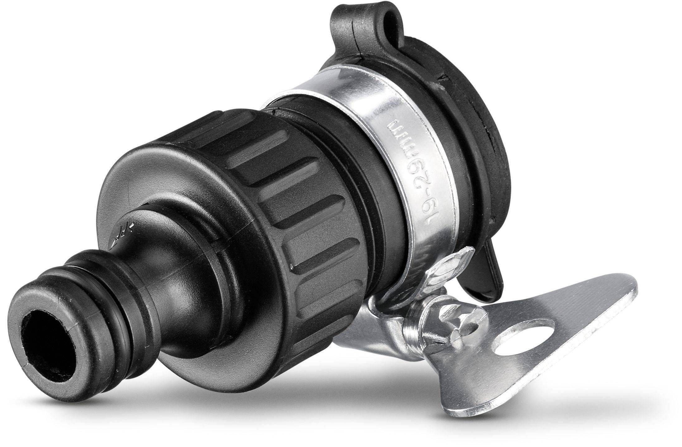 Kärcheri tugevat keermestamata kraaniadapterit kasutatakse liitmikega voolikute kinnitamiseks keermestamata kraanidele. Tänu üleminekumuhvile on välisläbimõõdud vahemikus 15 kuni 20 mm korralikult kaetud. Neid saab paigaldada ilma tööriistadeta, kinnitades lihtsalt tiibkruvi roostevabast terasest voolikuklambrile. Ühildub kõigi kiirkinnitussüsteemidega.