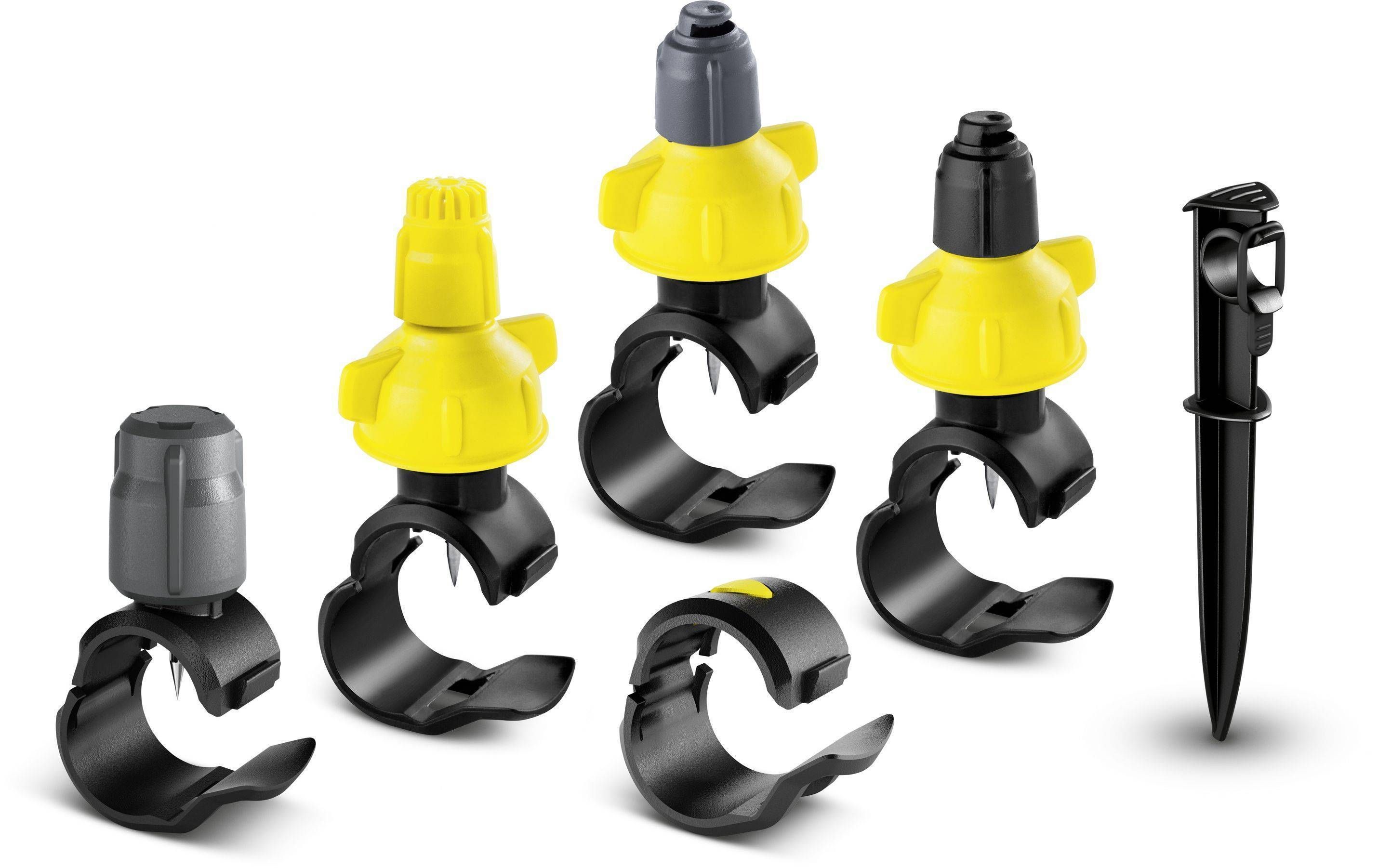 Otsikute komplekt on Kärcher Rain System®-i kastmissüsteemi üks lisatarvikute komplektidest ning selles on 5 tilkumismuhvi, 10 tihendus- ja pihustusmuhvi (4 x 90°, 4 x 180°, 2 x 360°) ja 5 kinnitusvaia. Tilkumis- ja pihustusmuhvid saab kinnitada Kärcher Rain System®-i vooliku mis tahes punkti. Muhvide paigaldamine on kiire, lihtne ja selleks ei ole vaja tööriistu. Avatud muhvi integreeritud nõel lihtsalt torgatakse voolikusse. Muhvi sulgemine kinnitab selle kindlalt vooliku külge. Tilkumismuhvi vee vooluhulka saab reguleerida vastavalt vajadusele (0-10 l/h). Tänu pihustusmuhvi keeratavale peale saab pihustusnurka reguleerida horisontaalselt ja vertikaalselt. Otsikuga saab vee vooluhulka reguleerida vahemikus 0-55 l/h, mis võimaldab säästa raha ja ressursse. Mittekasutatavad augud voolikus saab tihendusmuhvidega uuesti sulgeda. Kärcher Rain System®-i töörõhk on maksimaalselt 4 baari ja süsteemis on kombineeritud mikrotilguti ja tavalise kastmissüsteemi eelised ning seda saab kohandada peaaegu igale aiale.