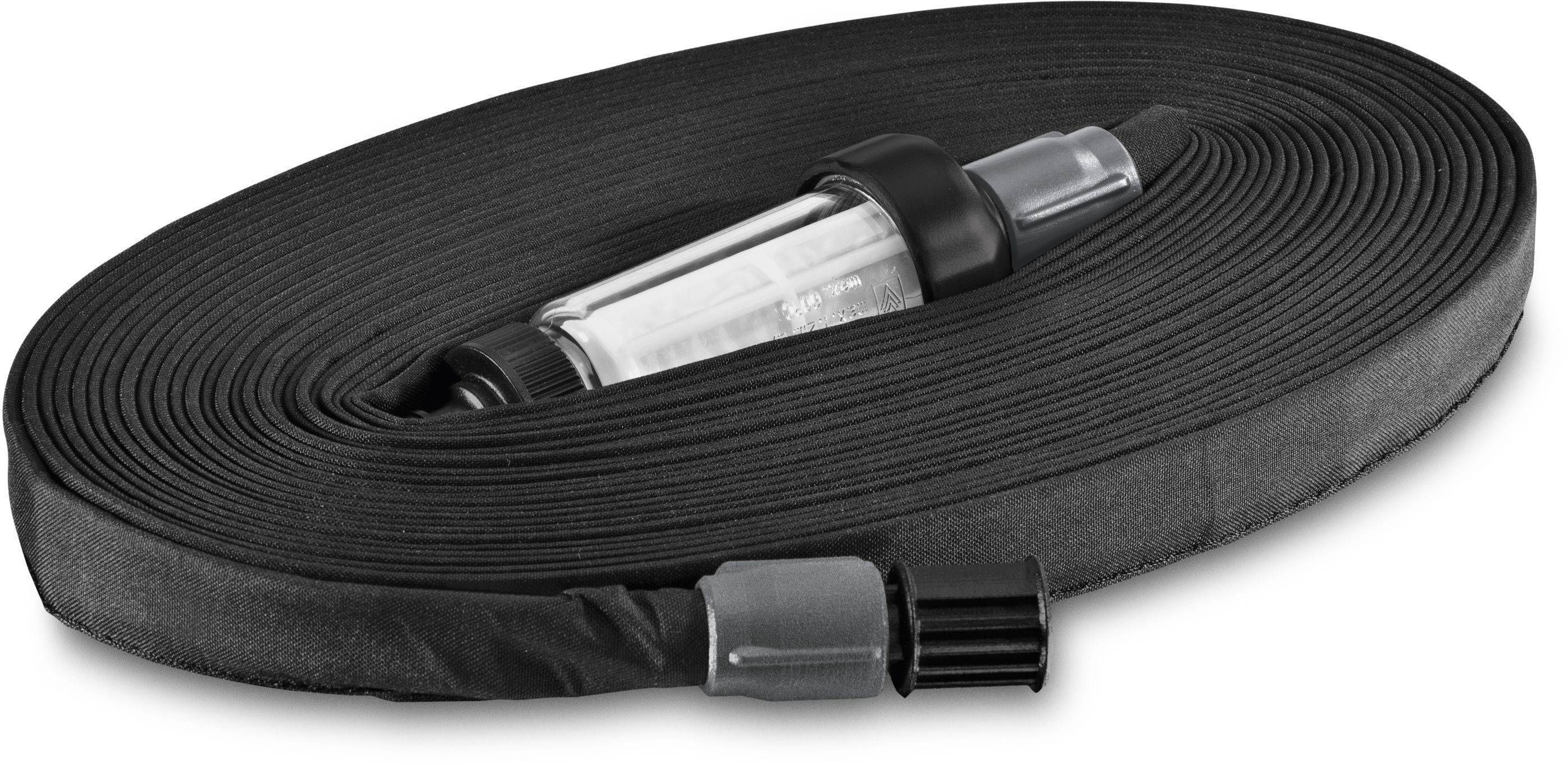 Tilkumisvooliku komplekt on koheselt kasutusvalmis ning sisaldab osakestefiltrit, 20 m pikkust tilkumisvoolikut ja otsamuhvi. Vesi tilgub ühtlaselt kogu vooliku ulatuses. Kuna vesi jõuab täpselt vajalikku kohta, on hekid ja põõsad optimaalselt kastetud. Voolikut saab vastavalt vajadusele lühendada ning otsamuhviga kindlalt sulgeda. Kahekihiline voolik ei sisalda ftalaate, kaadmiumi, baariumi ja pliid ning on seetõttu tervisele ohutu. Vooliku ideaalseks töösurveks on kuni 2 baari. Osakestefilter kaitseb tilkumisvoolikut mustuseosakeste eest. Filtri sisemust saab mugavalt ja hõlpsasti eemaldada ja puhastada. Sisendpoolel on kraaniliitmik, mis ühildub kõikide tuntud kiirkinnitussüsteemidega. Tõhusas kastmissüsteemis Kärcher Rain System™ on kombineeritud tilguti ja tavalise kastmissüsteemi eelised. See töötab survega kuni 4 baari ning seda saab kohandada peaaegu igale aiale.