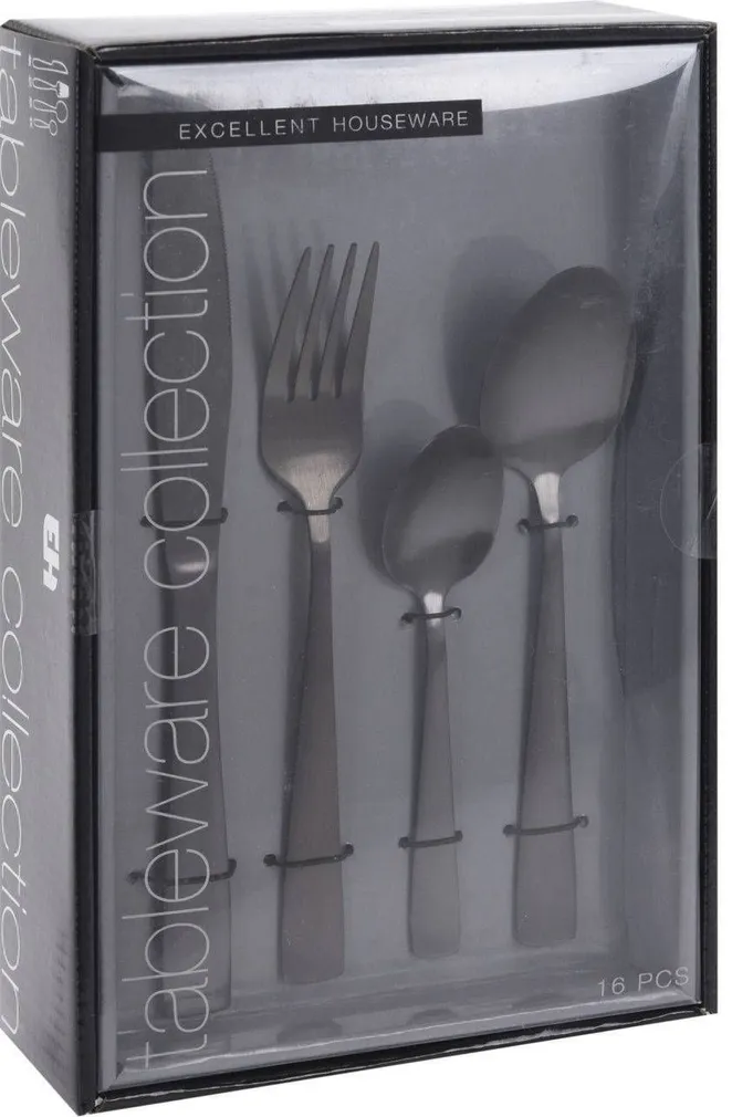 SÖÖGIRIISTADE KOMPLEKT MATT MUST 16TK PAKIS