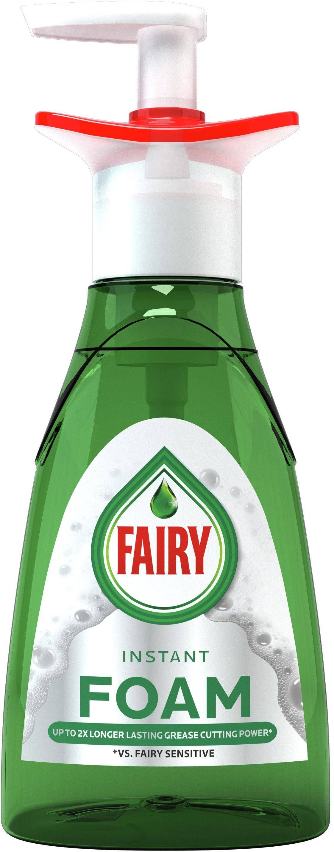 Fairy nõudepesuvahend käsitsi pesuks pumbaga pudelis, mis eemaldab rasva hetkega. Kiire ja mugav kohene vaht, millel on kaks korda kauem kestev rasvaeemalduse jõud. Pakendi kogus on 350 ml.