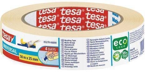 Tesa Pro kvaliteetne universaalne maalriteip. Liimijälgedeta eemaldatav 4 päeva. Temperatuuri taluvus kuni 50°C. Mugav ja lihne kasutada erinevatel maalritöödel. Mõõtmed on 50 m x 25 mm.